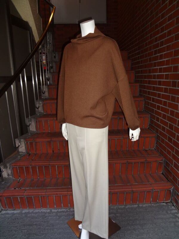■C`est moijeu 【セモアージュ】★あったか素材で冬のブラウス代わりにピッタリ^。^/!ブラウス風ボトルネックプルオーバー!セモア・セモアージュから、冬のブラウス代わりに着まわせるあったか素材を使ったゆったりサイのプルオーバーが出ました^。^/!詰まり過ぎないネックとワイドな身幅^0^/裾は、両脇裾のタックで広がらなくて大人可愛いコクーンシルエット^。^/!この着丈ならスカートにもOK^。^/!