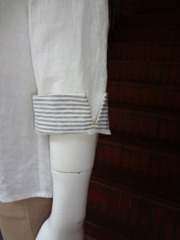 ■FONTANA【フォンタナ】涼しさバツグン!水洗いした自然な麻のシワシワ感がイイ感じ^。^/!麻ラウンドカラーかぶりシャツ!おススメです!フォンタナから、涼しさバツグンな麻のかぶりシャツが出ました^0^v大人女子に人気のチビ襟のラウンドカラーが大人可愛いデザインシャツです^0^/袖はチョイ長めな八分丈袖^。^v台襟裏側と袖先内側は同色の細ボーダーのチラ見えがオシャレー!!!何とも言えない水洗いした自然な麻のシワシワ感がイイ感じ^0^/涼しくて肌触りの良い麻100%生地なので夏カジュアルにピッタリ~^0^/