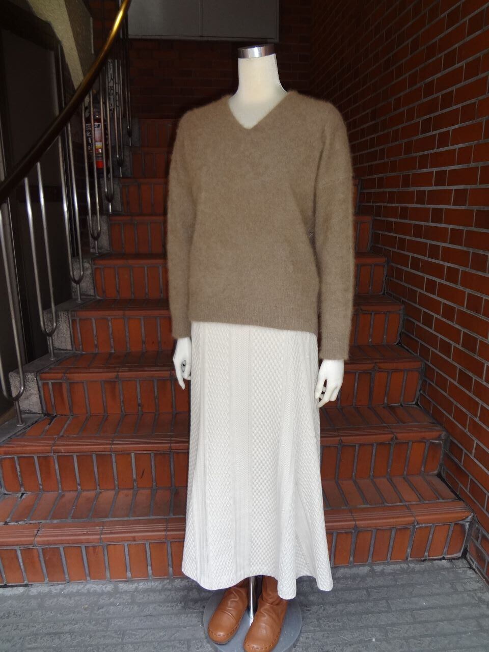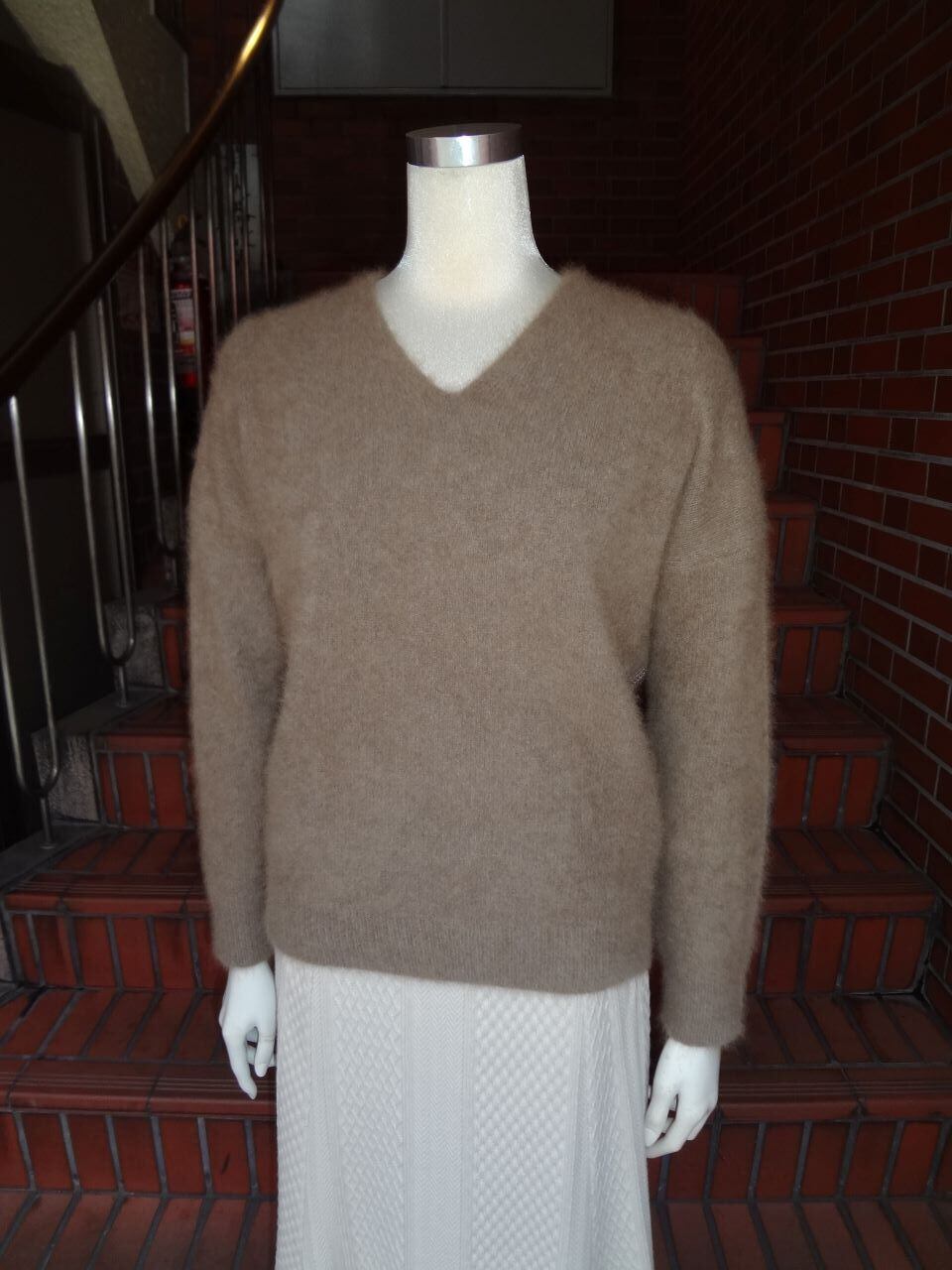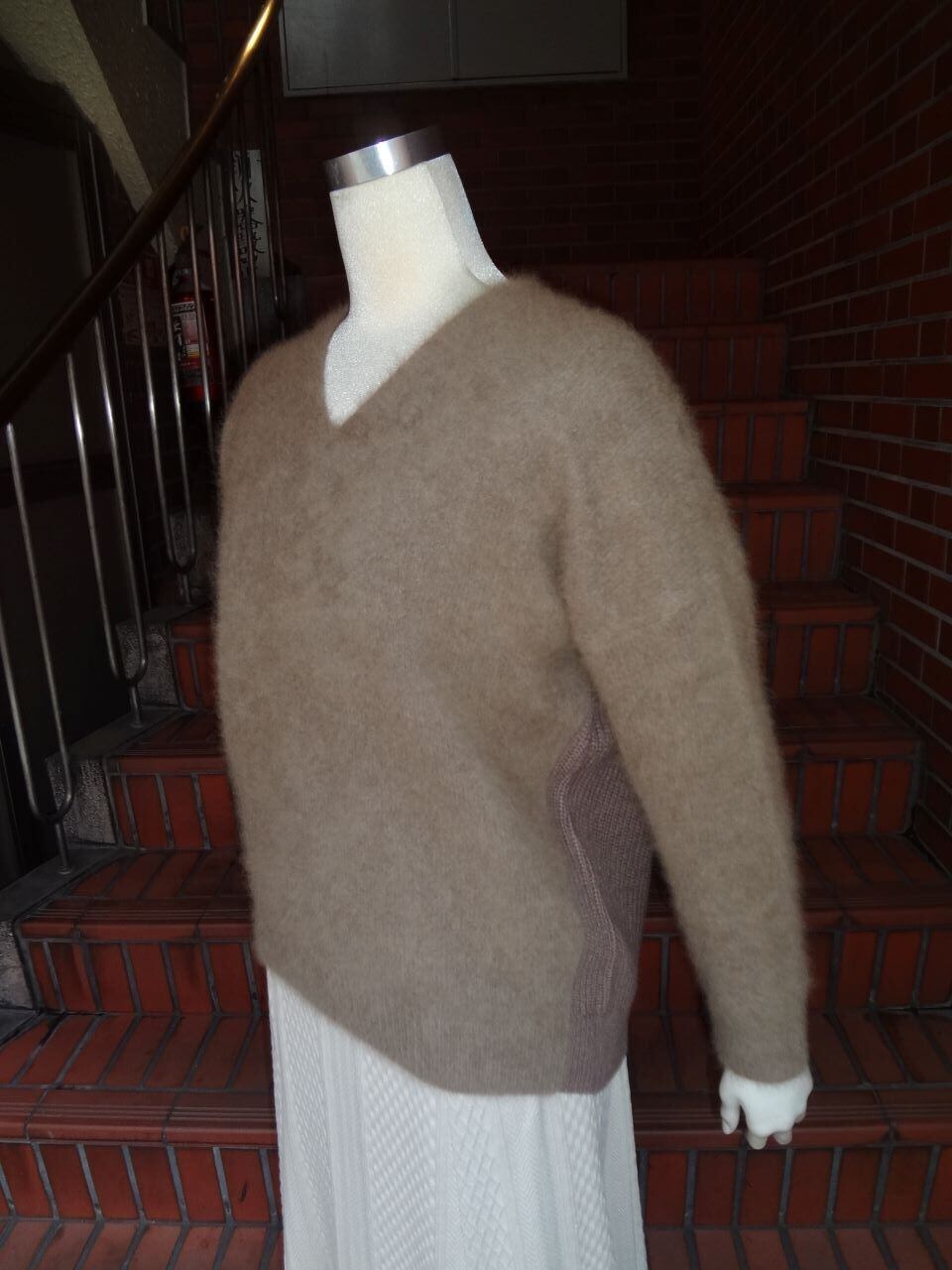 ATELIER SIX 【アトリエシックス】 ★前後浅Vネック背中畔編みラクーンプルオーバーニット!