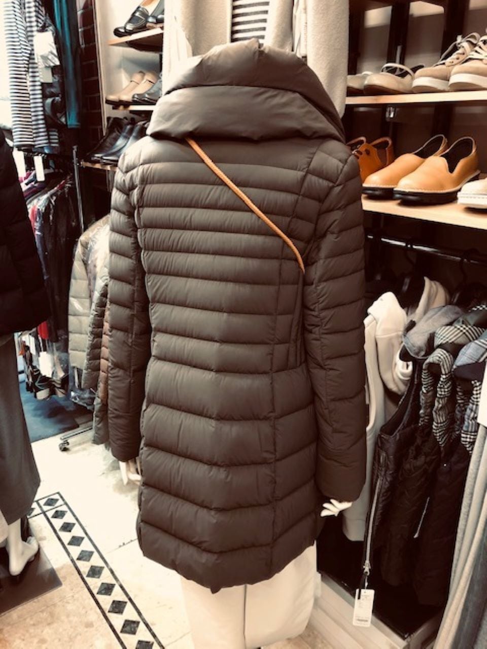 ■C`est moijeu 【セモアージュ】 ★ストレッチダウンなのでウエストラインの形がキレイで着心地バツグンな軽量ストレッチダウン^。^/!軽量ストレッチダウンコート!おススメです!セモア・セモアージュの仕事にもお出掛けにもバッチリなストレッチの良く利いた軽くて暖かい着心地の良いダウンコート^。^/!表生地に伸縮性の強いストレッチ生地を使っているので従来のダウンには無い着心地の良さとキレイなラインが特徴のストレッチダウンコートです^0^v!ウエスト部分を少し絞っているのでダウンコートとは思えないラインのキレイな大人ダウンコートに仕上がっています^。^v大き目な襟は、寒い真冬でも首まわりをガッチリとカバーし、大人女性には嬉しい小顔見え効果バツグン^0^/ワイドパンツ・スカートにも、スキニーパンツにブーツ合わせにもカッコ良く着回せます^0^/この大人カッコ良さはセモアージュだけ^。^v