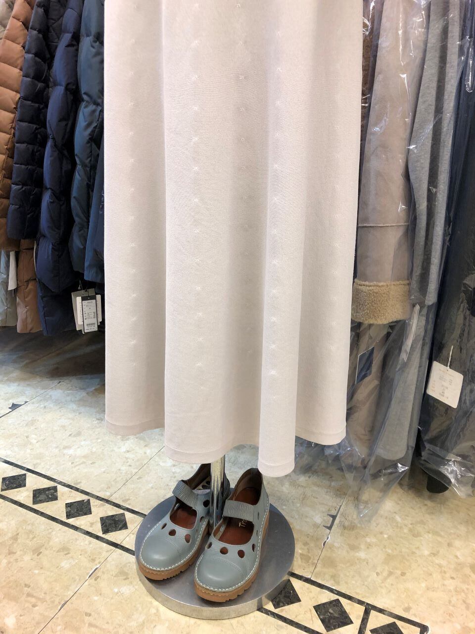 ■C`est moijeu 【セモアージュ】 ★初夏まで着れ、手洗いOKなのが嬉しい薄手のスプリングニット^。^/!スプリングニットフレアースカート!!!セモアージュのサラッサラの肌触りの良い薄手ニットです^0^/裾の広がったロング丈のフレアーラインが上品な大人ニットスカート^。^/!同素材のトップスと組み合わせればセットアップで仕事・お出掛けにもバッチリ!もちろん他のTシャツ・ブラウスとの相性もバツグン!!!やっぱりセモアージュは大人のオシャレ!おススメです^。^/!きれいめ大人カジュアルにはピッタリ~^0^/