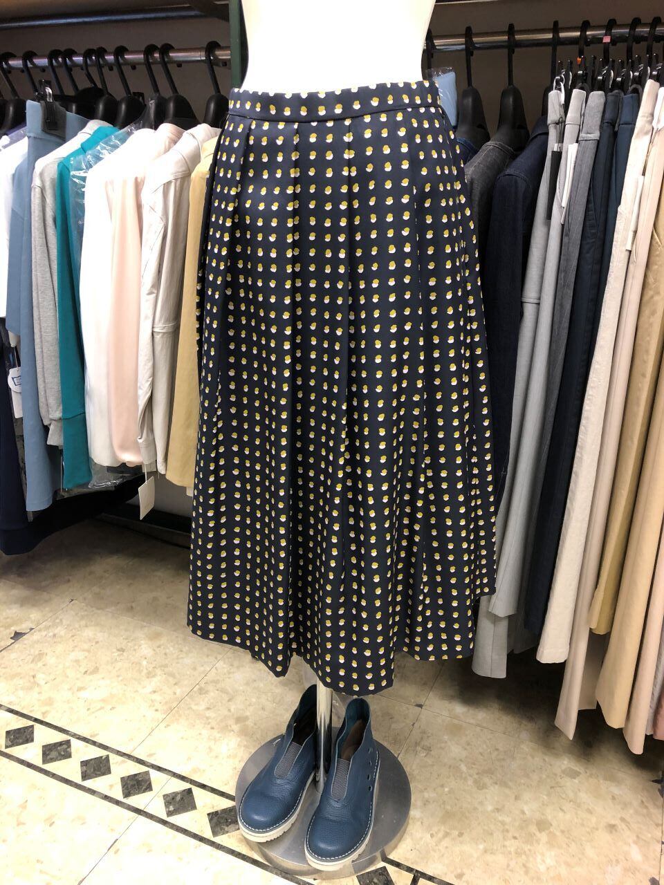 ■C`est moijeu 【セモアージュ】 ★オールシーズン着まわせシワにもならなくて手洗いOKなのが嬉しい^。^/!ビーンズドット柄ソフトプリーツスカート!!!セモアージュの長時間座ってもシワを気にせずオシャレが楽しめるスカートです^0^/ウエストタックから、裾への広がったソフトプリーツラインが上品で大人可愛いプリントスカート^。^/!トップスには、季節によってニット・Tシャツ・ブラウス・ジャケット等々の何とでも相性バツグンなので仕事・お出掛けにもバッチリ!やっぱりセモアージュは大人のオシャレ!おススメです^。^/!きれいめ大人カジュアルにはピッタリ~^0^/