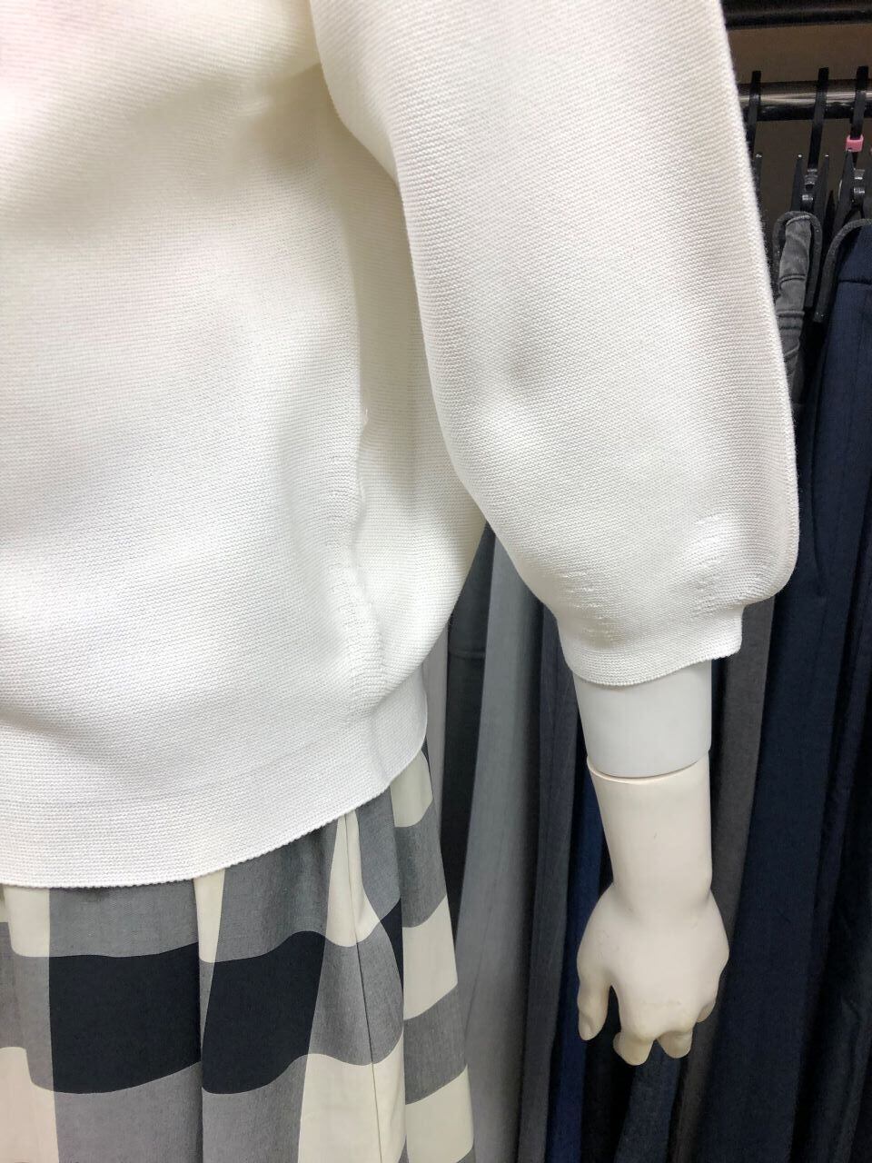 ■ATELIER SIX 【アトリエシックス】 ★とても着心地の良いホールガーメント編み(継ぎ目の無い無縫製ニット)!春らしいカラーの幸せニット^。^/!おススメです!アトリエシックスの首回りが空いていて首が細見えするモックネックと、ニット袖での人気の大人可愛いパフ袖のゴールデンな組み合わせ^0^v!おまけに無縫製の為、脇部分の収まりが良く着心地バツグンのホールガーメント編み!!!人気の八分袖は初夏まで着まわせ、ワイドパンツ・ふんわりスカート等のコーディネートが最高に大人可愛い^0^/