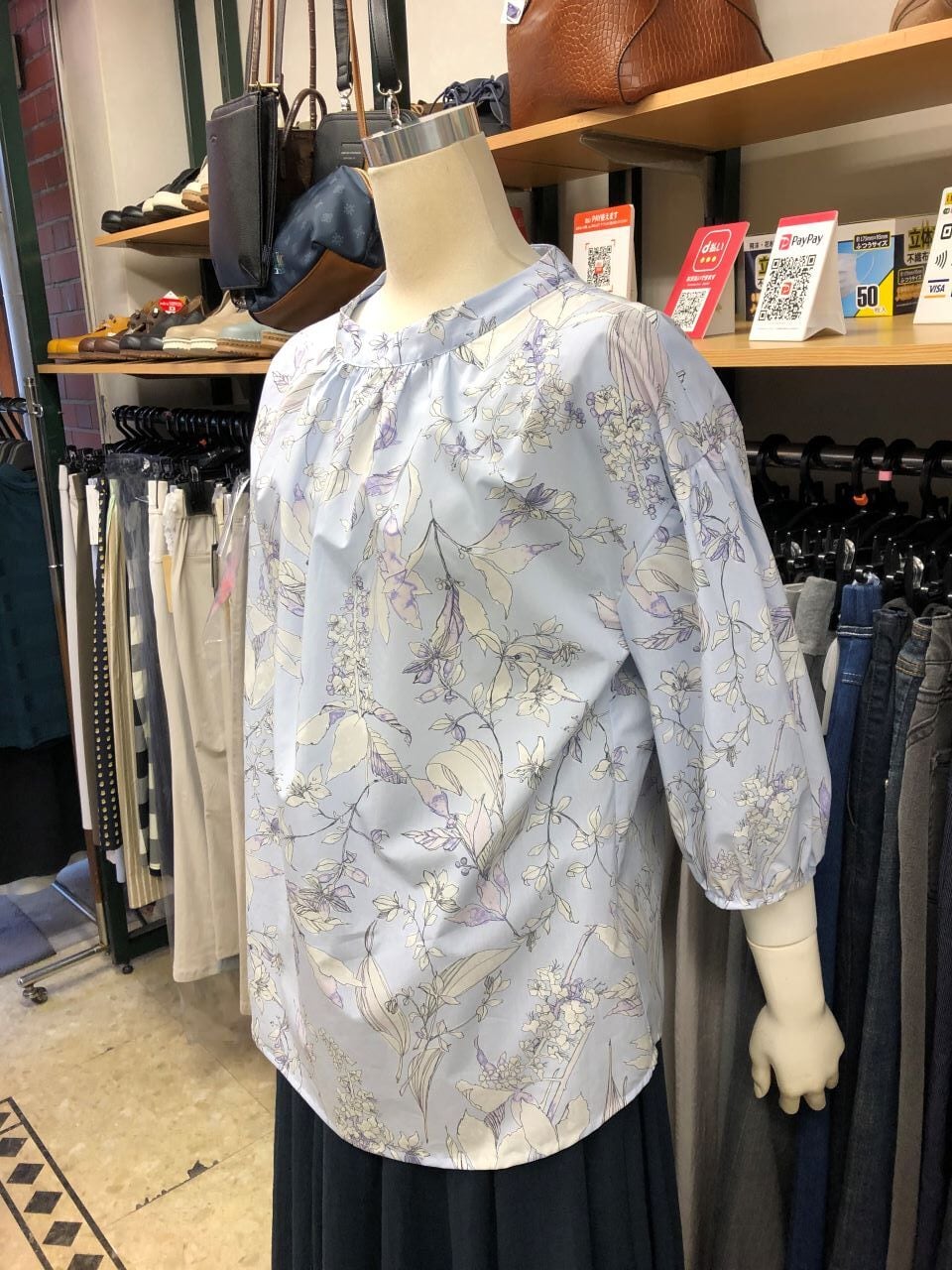 ■PAPILLON SELECT【パピヨンセレクト】★人気の7分丈パフ袖ブラウスが出ました^。^/!ボタニカル柄背中リボンブラウス!日本製!パピヨンセレクトメーカーから、首回りが少し開いたモックネックで、背中リボンがオシャレな肌触りバツグンの綿100%生地を使った人気のボタニカル柄のブラウスが出ました^。^/!吸水性・通気性の良い綿素材は、春から秋までスリーシーズンを通して着まわせるのが大人女性には嬉しい!!!7分丈の袖先は大人可愛いソフトパフ袖^0^/これからの季節には、一着持っていれば重宝するおススメなブラウスです^0^/