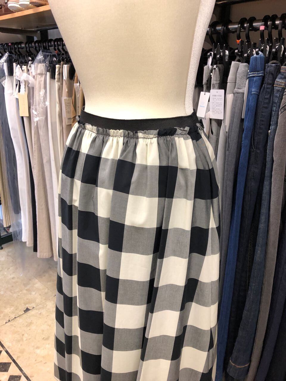 ■FONTANA【フォンタナ】★春夏にピッタリなブロックチェック柄^。^/!ブロックチェック柄ミモレ丈スカート!フォンタナの春から秋まで着まわせる綿100%の生地を使ったブロックチェック柄が堪らなく大人可愛いミモレ丈スカート^。^/!トップスをウエストINした時にチラ見えするウエストのチビフリルが可愛くて、Aラインに広がった裾が上品な大人カジュアル感バツグン^0^/夏には白T・黒Tのシンプルコーデもいいかも^0^vウエストは安定感が良くて楽々な幅広の平ゴム入りなので締め付け・着崩れナシのノンストレス^0^/吸水性・通気性の良い綿素材は、春から秋までスリーシーズンを通して着まわせるのが大人女性には嬉しい!!!これからの季節には、一着持っていれば重宝するおススメなスカートです^0^/