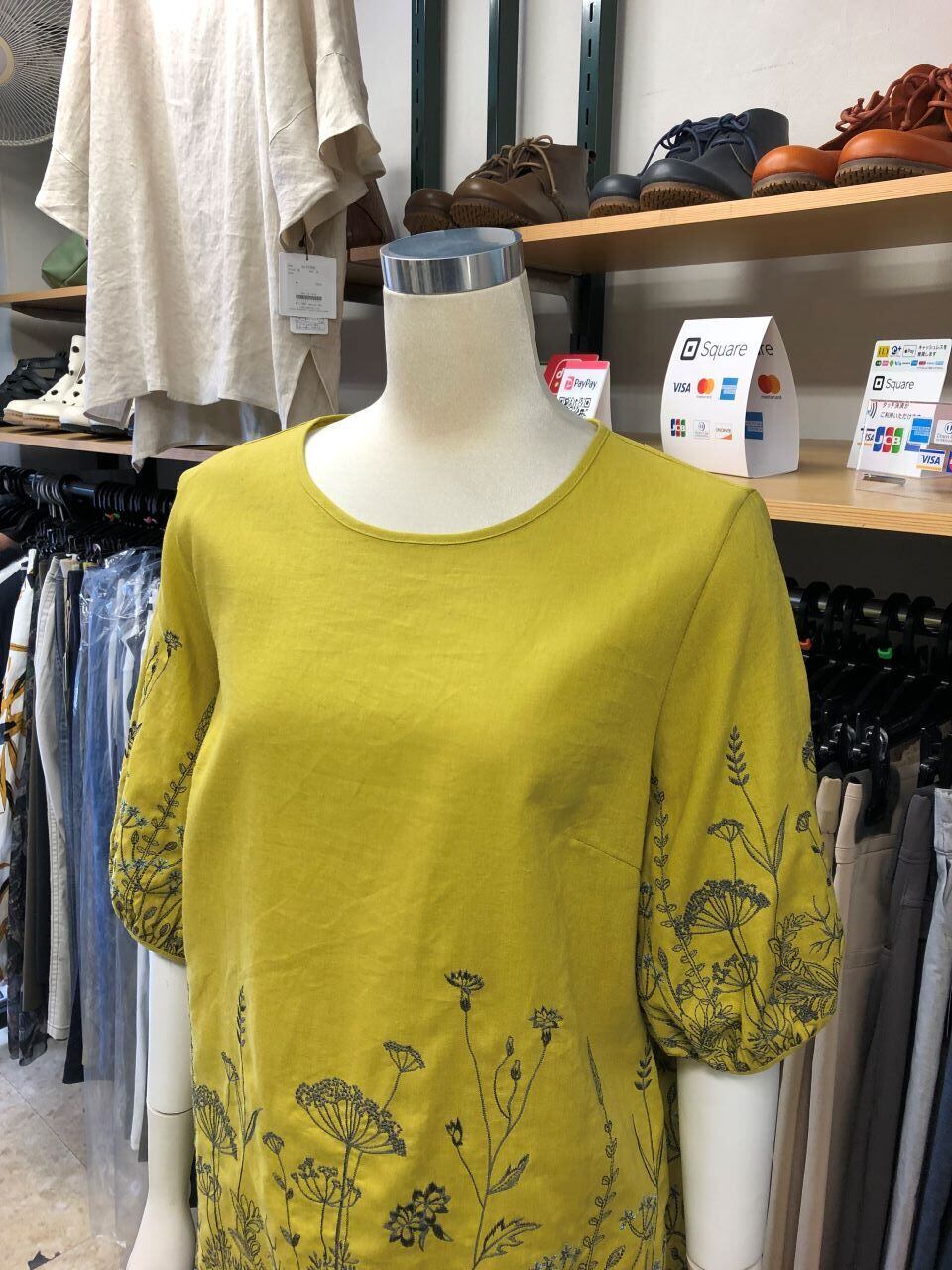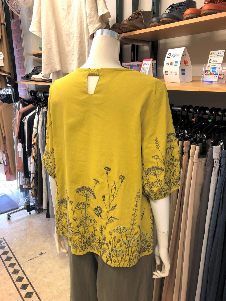 ■C`est moijeu 【セモアージュ】 ★毎年好評の麻刺繍シリーズがバージョンアップして今年も登場^。^/!ボタニカル刺繍六分袖ブラウス!超おススメです!セモアージュから、去年も大人気だった麻の刺繍ブラウスが刺繍をよりキレイにバージョンアップして今年も出ました^0^/涼しくて柔らかな肌触りの良い麻×レーヨン生地に夏の草花の刺繍が存在感バツグン^0^/デザインは、女性に大人気のストンとした身幅で袖は肩・二の腕を気にしなくて大丈夫な六分袖が嬉しい^0^/夏には嬉しい手洗いOK^0^/