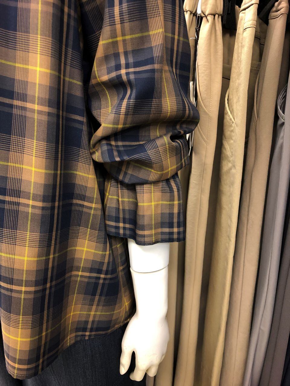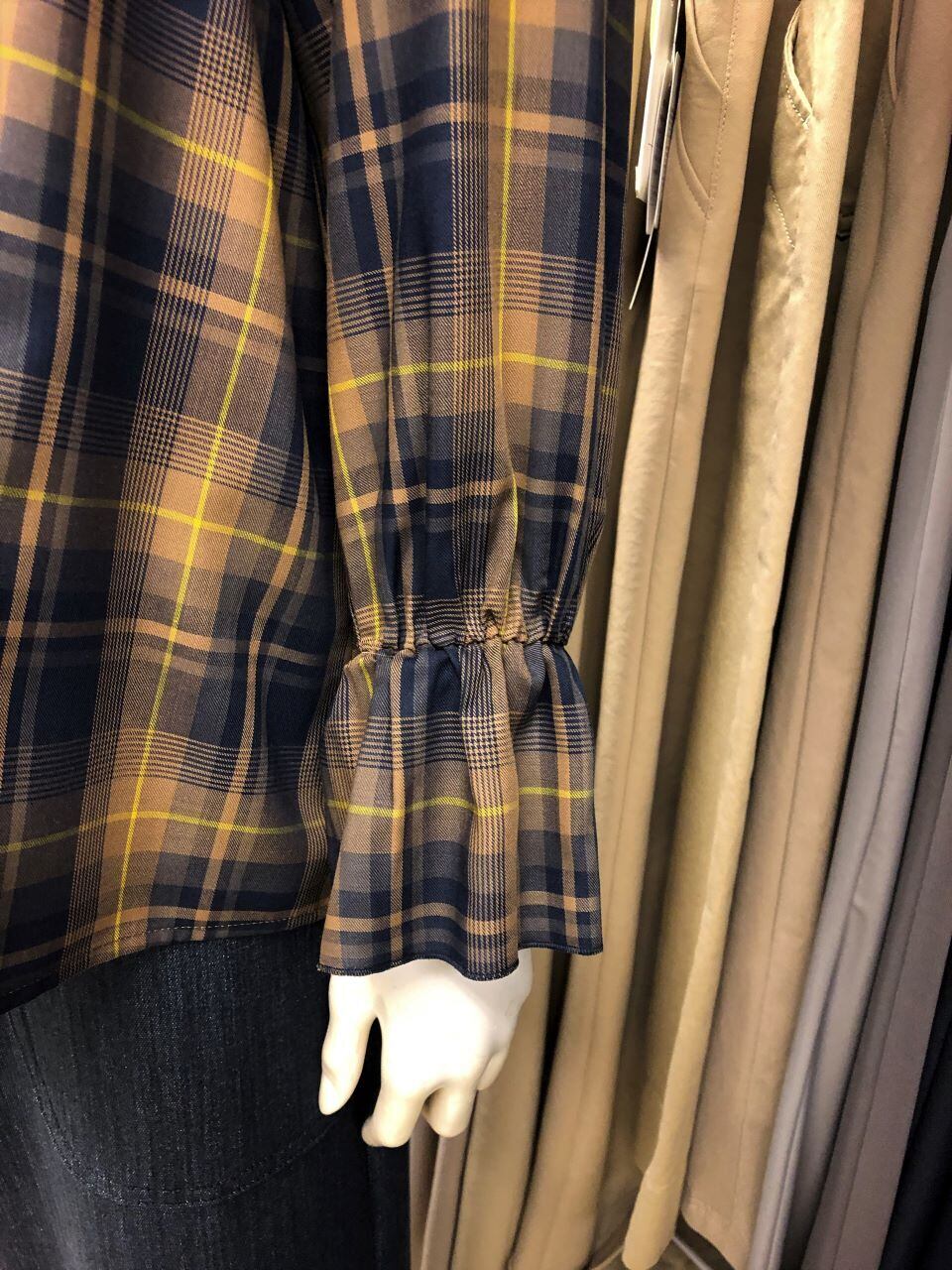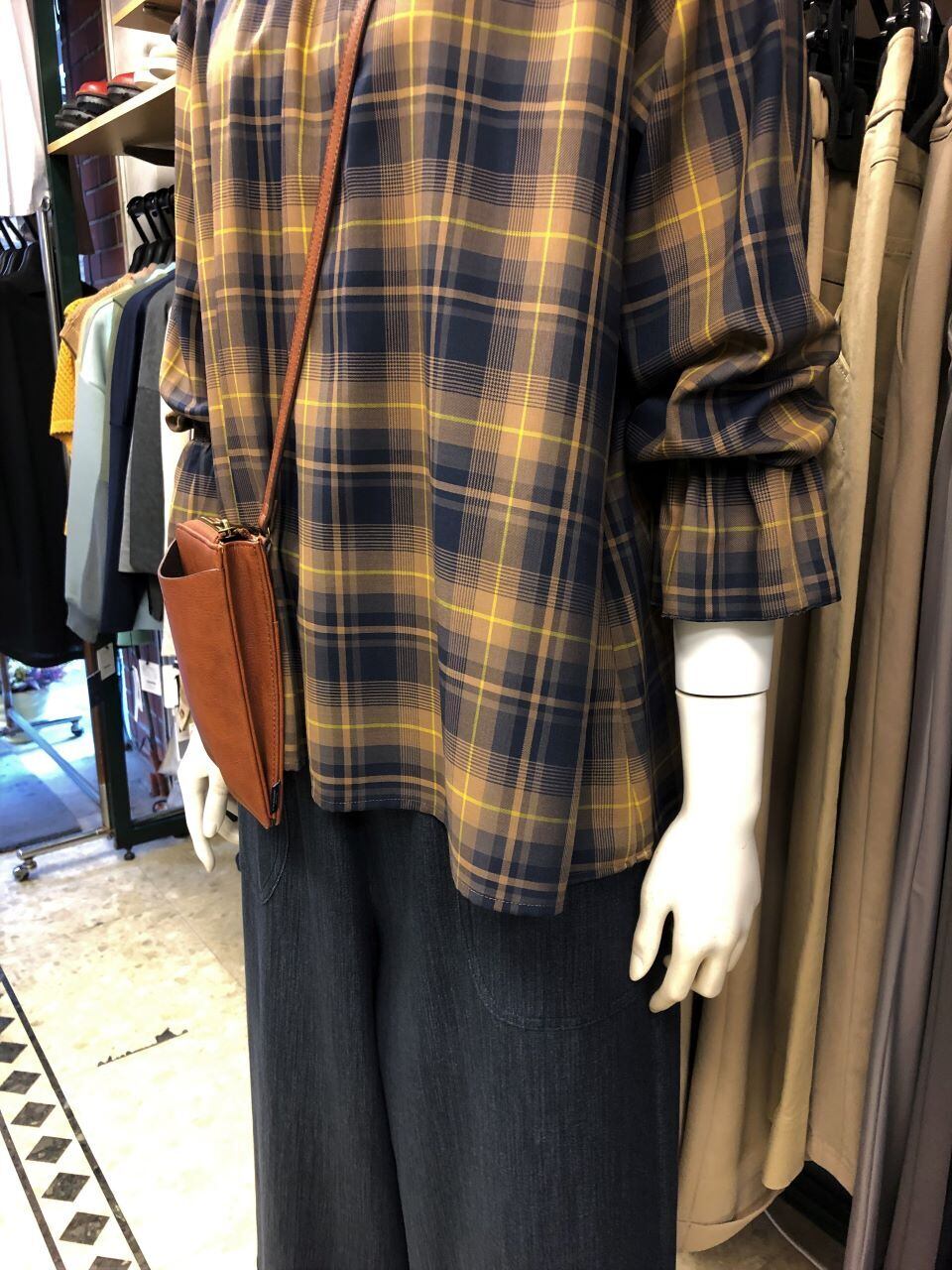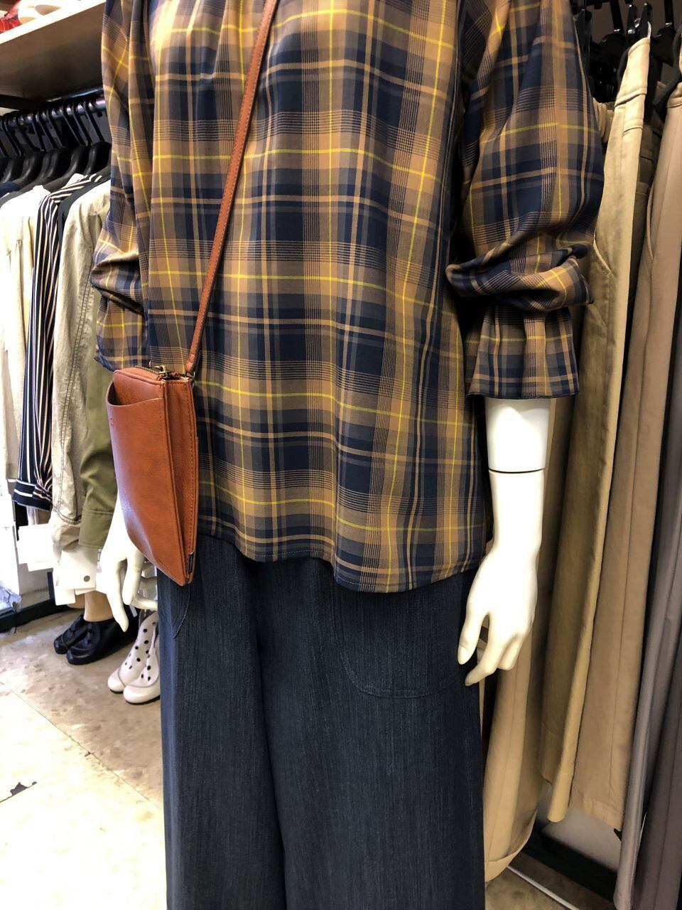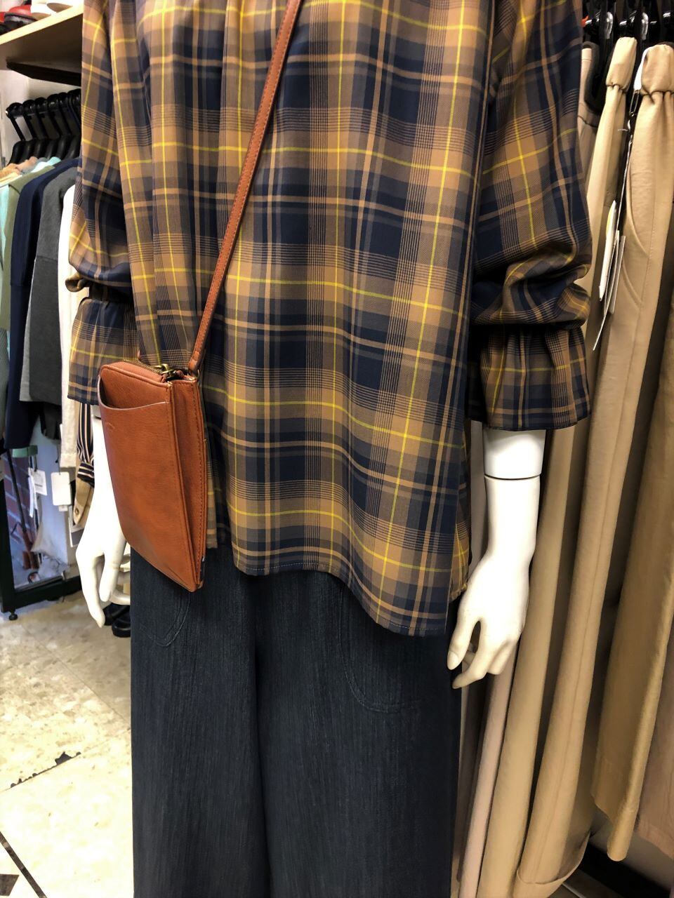 ■PAPILLON SELECT【パピヨンセレクト】★秋の新作ブラウス入荷しました^。^/!チェック柄ネックゴムシャーリングブラウス!日本製!パピヨンセレクトメーカーから、首回と袖にゴムシャーリングを施したチェック柄のブラウスが出ました^。^/!台形型にソフトに広がった身頃と、ゴムシャーリングで上げれば五分丈・七分丈と好みの袖丈に出来、袖先は大人可愛いベル袖^0^/これからの季節には、一着持っていれば重宝するおススメなブラウスです^0^/