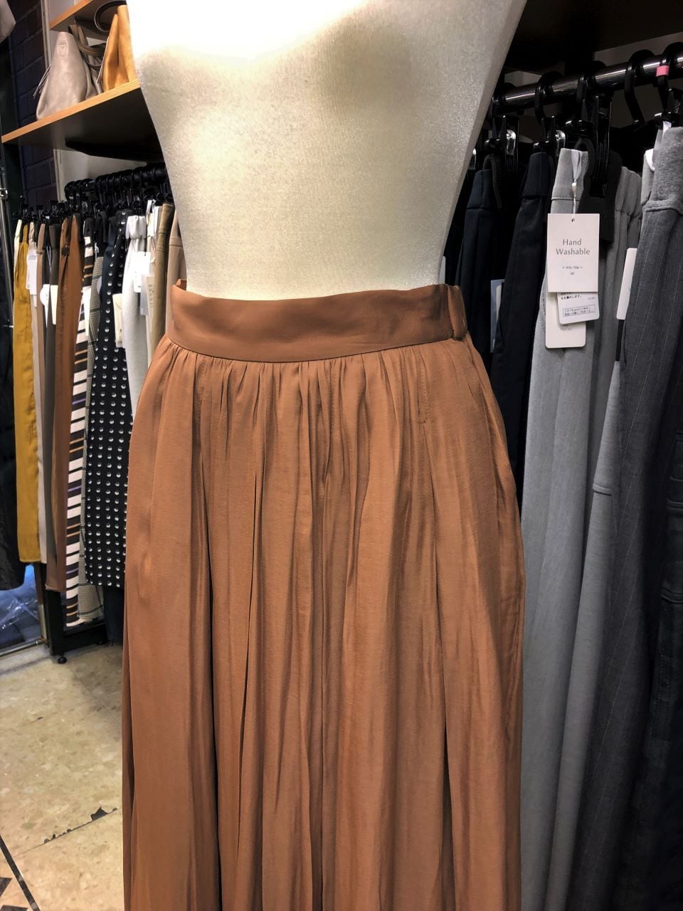 ■C`est moijeu 【セモアージュ】 ★昨年展開のご好評シリーズがリニューアル登場^。^/!シャイニーサテンロングスカート!超おススメです!セモアージュから、去年も大人気だったサテンスカートがよりキレイにバージョンアップして今年も出ました^0^/一年中着回せるシャイニーサテンの微光沢の質感が存在感を高めてくれるソフトプリーツスカート^0^/ウエストから裾にかけて広がる緩やかなシルエットが美しいラインを描きます^0^vゴム仕様の楽々ウエストで、適度なリラックス感が有り、トップスインでもアウトでも映える汎用性の高さも魅力^0^/ふんわりとした軽さのあるロング丈は、スニーカーから、フラットシューズ、ヒール合わせまで足元のお洒落もスマートに映え、定番としてはもちろん、オンオフ問わず着回せるワードローブの強い味方です。^0^/