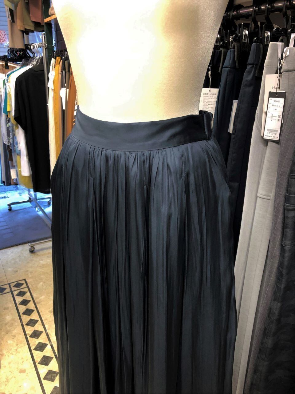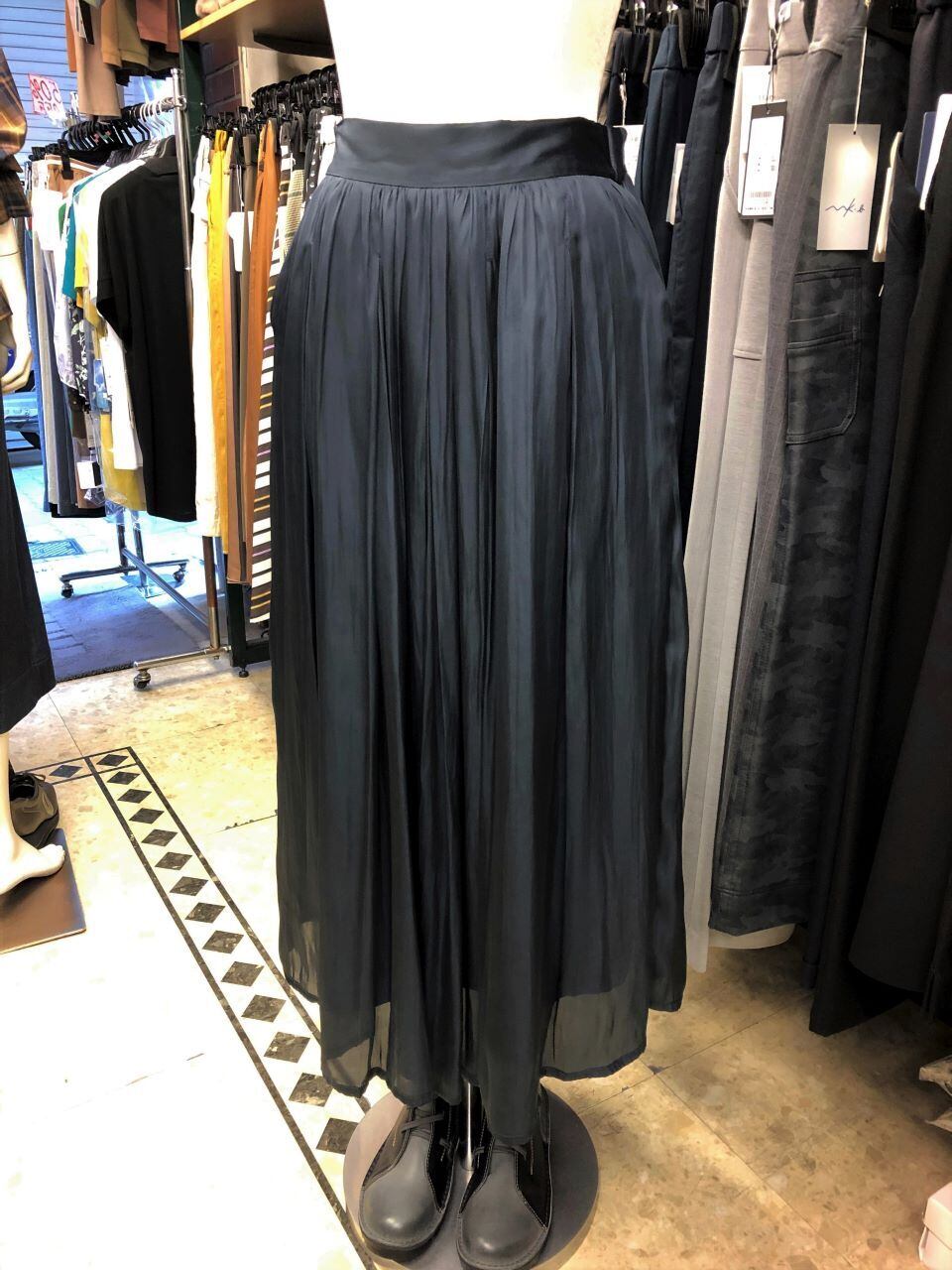 ■C`est moijeu 【セモアージュ】 ★昨年展開のご好評シリーズがリニューアル登場^。^/!シャイニーサテンロングスカート!超おススメです!セモアージュから、去年も大人気だったサテンスカートがよりキレイにバージョンアップして今年も出ました^0^/一年中着回せるシャイニーサテンの微光沢の質感が存在感を高めてくれるソフトプリーツスカート^0^/ウエストから裾にかけて広がる緩やかなシルエットが美しいラインを描きます^0^vゴム仕様の楽々ウエストで、適度なリラックス感が有り、トップスインでもアウトでも映える汎用性の高さも魅力^0^/ふんわりとした軽さのあるロング丈は、スニーカーから、フラットシューズ、ヒール合わせまで足元のお洒落もスマートに映え、定番としてはもちろん、オンオフ問わず着回せるワードローブの強い味方です。^0^/