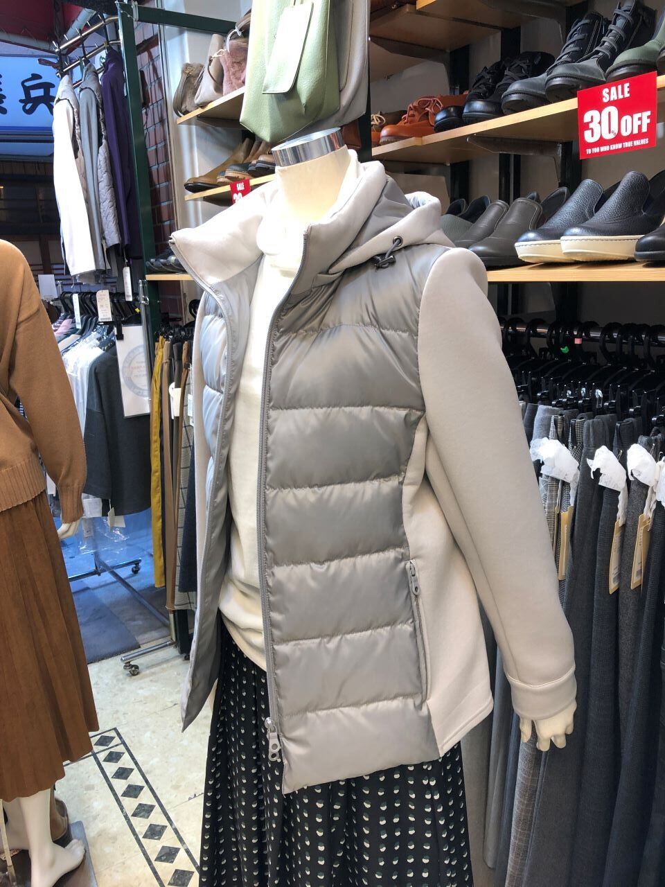 ■素 材 表地 ポリエステル100% ・中綿 ダウン90%フェザー10%・袖背中部分 ポリエステル 68% レーヨン 27% ポリウレタン 5%