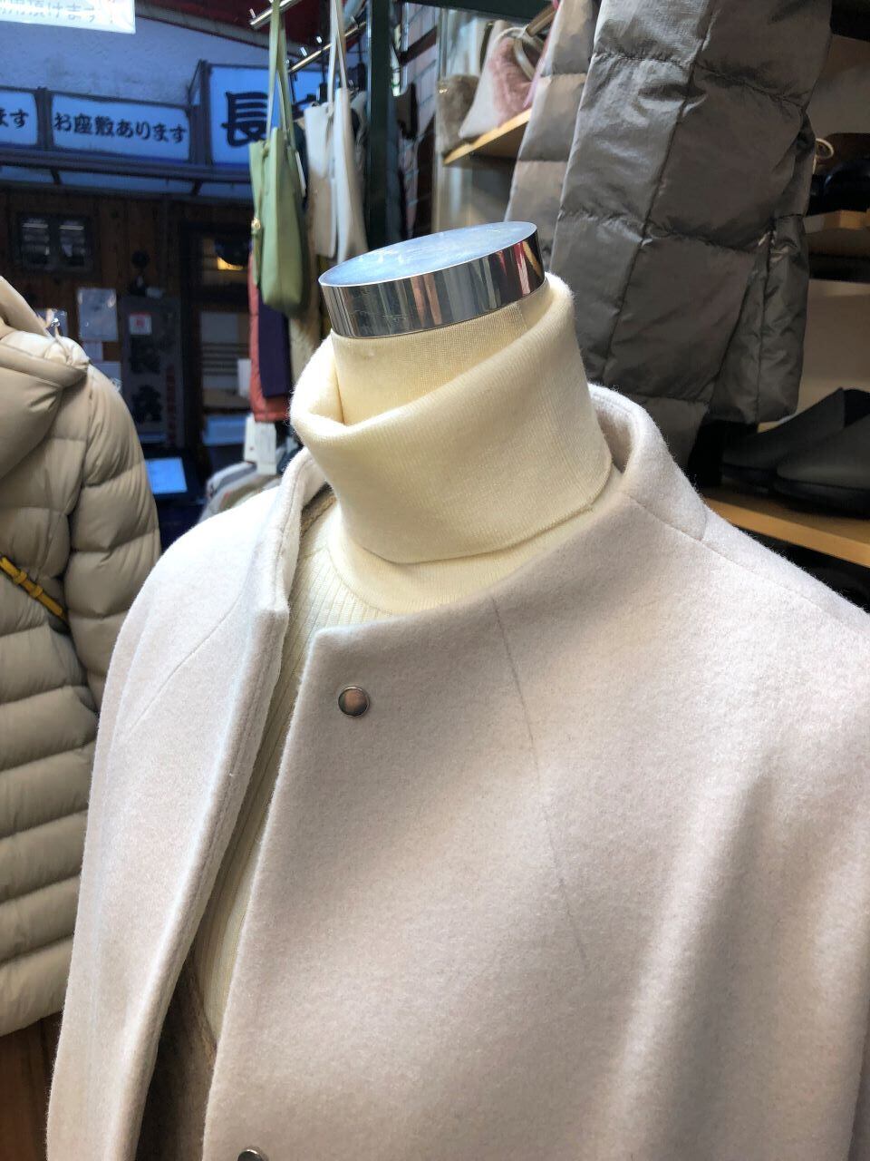 ■ATELIER SIX 【アトリエシックス】 ★こんなジャケットが欲しかった!とてもやわらかで暖かく、大人可愛いパフ袖^。^/!ニューイングランドヴァージンウールジャケット!超おススメ!昨年アトリエシックスの大ヒットジャケットがバージョンアップして今年も出ました^0^v!やわらかくて超暖か!!!スッキリ見えする低めなボトルネックとパフ袖が最高に大人可愛いジャケットです^0^/着心地の良いドロップショルダーでワイドなゆるっとした身幅のストンとしたシルエットで、着ているだけで幸せ気分にしてくれます^^^^! バージンウールは、普通のウールとは全く違い「今までに1度も毛を刈ったことのない羊からとれる最初のウール」の事!羊の一生のうち、たった1度しか取れないとても貴重な素材です^0^v2回目以降に取れるウールよりも柔らかく、最高の肌触りで丈夫で保湿や防水にも優れています^0^/