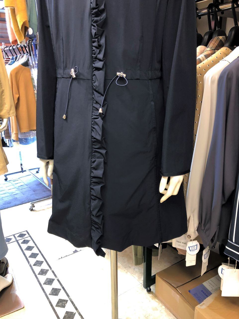 ■PAPILLON SELECT【パピヨンセレクト】★前立ての小さ目フリルが大人可愛い^。^/!前立てWフリルライナー付きスプリングコート!おススメです!パピヨンセレクトメーカーから前立て部分に小さ目なWフリルのスプリングコートが出ました^。^/!ウエスト部分には、前後で絞りが出来るゴム入りなのでお好みのサイズに調整でき、フードを外せば襟はスタンドカラーでフリルとの甘辛デザインが大人可愛いけどスッキリ見え!!!中のライナーも取り外せるので春・秋~冬と3シーズン着回せるのが嬉しい^0^/ライナー付きスプリングコートは持っていれば重宝するおススメな一着です^0^/