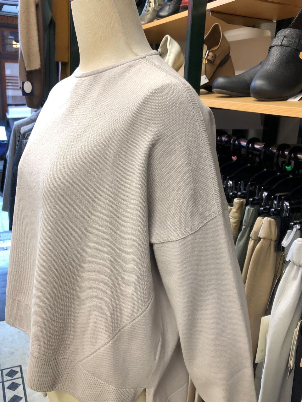 ■ATELIER SIX 【アトリエシックス】 ★とても着心地の良いホールガーメント編み(継ぎ目の無い無縫製ニット)!春らしい雰囲気で幸せ気分満開^。^/!ホールガーメントプルオーバーニット!日本製!おススメです!アトリエシックスのワイドな身幅が大人可愛いプルオーバーニットです^0^/前身頃が鹿の子編みになっていて、脇に縫い目のない無縫製の為、脇部分の収まりが良く着心地バツグンのホールガーメント編み!!!両サイドスリット入りの長すぎない少し後ろ下がりになった着丈は春から初夏に向けてのトップスとして、ワイドパンツ・スカートとの相性バツグンな最高に大人可愛い一着です^0^/