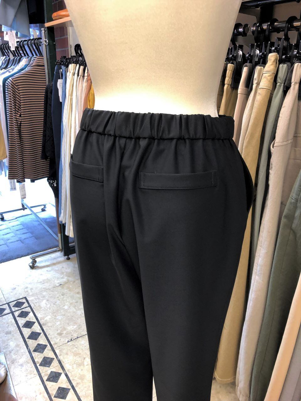 ■PAPILLON SELECT【パピヨンセレクト】★大人女性なら一着は持っていたい黒パンツ!スッキリ細見えが嬉しい^。^/!テーパードパンツ!日本製!パピヨンセレクトメーカーから、座ってもシワになりにくいキレイなテーパードパンツが出ました^。^/!今やテーパードパンツは細身デザインの定番!!!細すぎず緩すぎないウエスト回りは、前部がスッキリ見えするノーギャザーで、後部は気になるヒップをカバーする平ゴム入りギャザー^0^/仕事着・オシャレ着にピッタリなポリエステル素材は、丈夫で手洗いが出来て、オールシーズンを通して着まわせるので持っていれば重宝するおススメなパンツです^0^/