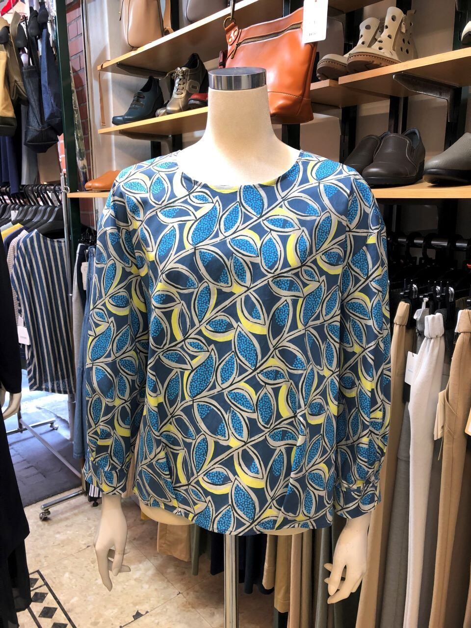 ■PAPILLON SELECT【パピヨンセレクト】★人気のボタニカル柄ブラウスが出ました^。^/!イタリア製ボタニカル柄プリントブラウス!日本製!パピヨンセレクトメーカーから、イタリア製のボタニカル柄プリントがオシャレな肌触りバツグンな綿生地を使って日本で縫製をしたブラウスが出ました^。^/!吸水性・通気性の良い綿素材は、春から秋までスリーシーズンを通して着まわせるのが大人女性には嬉しい!!!袖先はカウスのタックでソフトパフ袖、前身頃は裾のタックで少し幅を狭めた大人可愛いコクーン風デザイン^0^/これからの季節には、一着持っていれば重宝するおススメなブラウスです^0^/植物がモチーフとなっているボタニカル柄は、花柄よりも大人っぽく落ち着いた印象があります!可愛らしくなり過ぎないので、『フェミニン過ぎてしまうのが苦手』という方にもおすすめの柄です^0^/もちろん手洗いOKです!