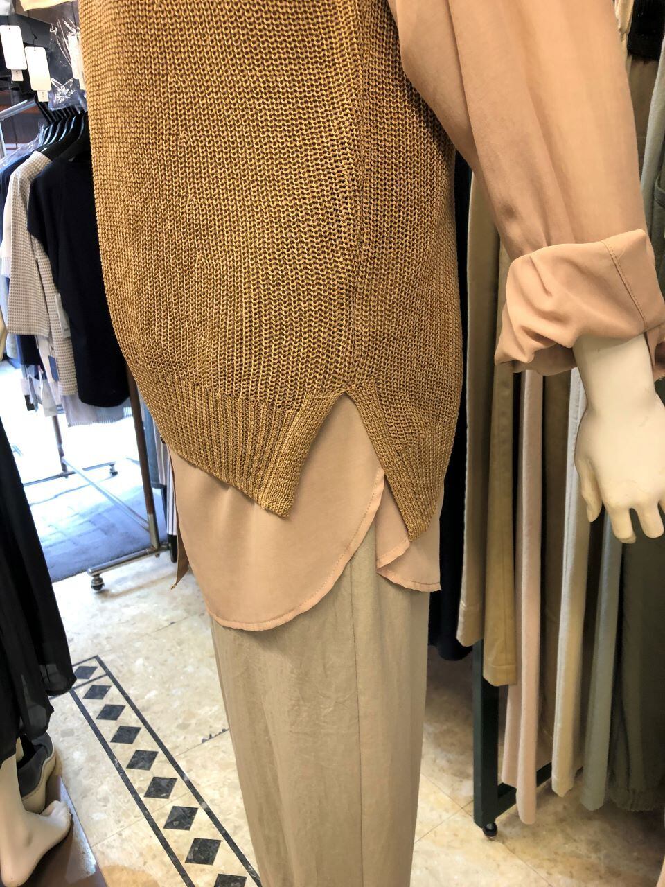 ■ATELIE SIX 【アトリエシックス】 ★ 秋まで着回せるニットベスト^。^/!畔編み丸首ベスト!超おススメです!後ろ下がりでヒップが隠れるチョイ長めな着丈の大人可愛い丸首ベストです^0^/ベタッとしなくて通気性の良い綿のザラザラっとした糸で編まれた畔編みは、シャツにもTシャツにも相性バツグンで秋まで着回せるおしゃれアイテム^0^v夏には白Tシャツに重ねるだけでお出掛けにも通勤着にも大活躍^0^/ベーシックデザインだからコーディネートし易く、ワイドパンツ・フレアースカート合わせもバッチリ~^^^^!!!