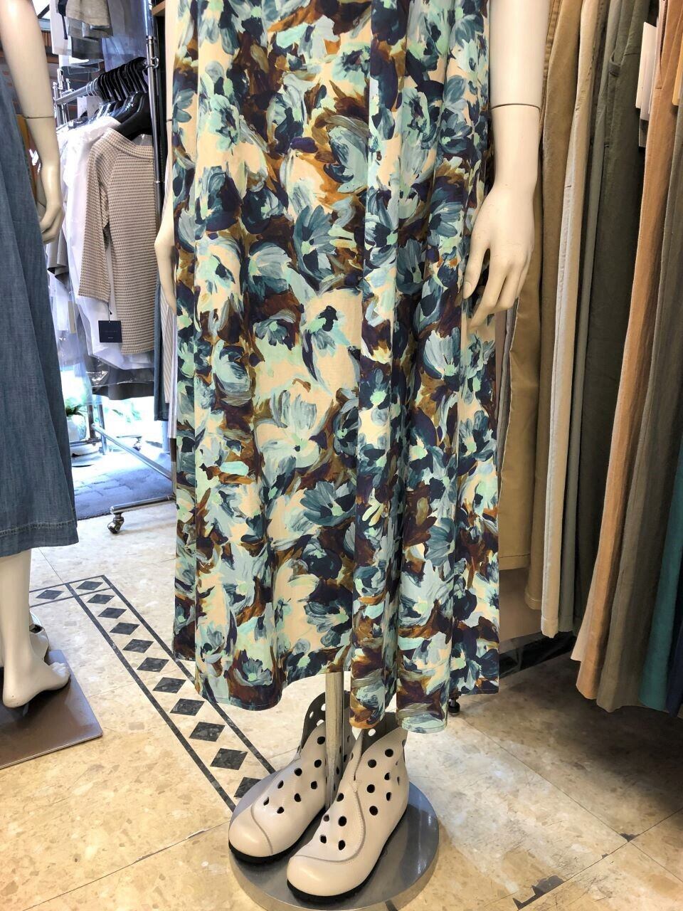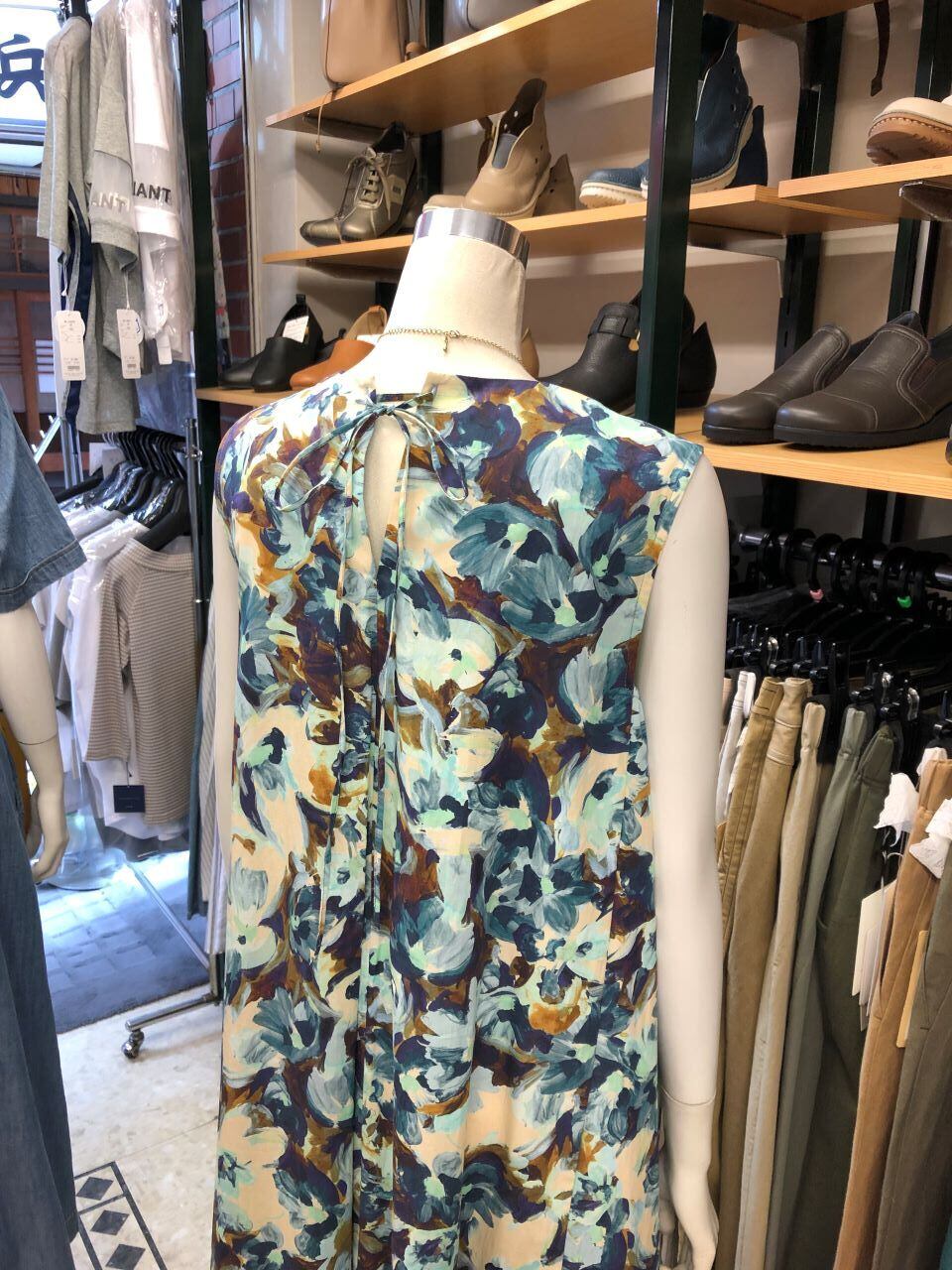 ■ATELIER SIX 【アトリエシックス】 ★夏になると大活躍なワンピース^。^/!フラワーペイント背中リボンフレアーワンピース(フランス製生地)!超おススメです!アトリエシックスから、夏の人気シリーズのワンピースがバージョンアップして今年も出ました^0^/暑い夏でも崩れ過ぎなくて通勤にもお出掛けにも使える涼しくて楽々なワンピースです^0^/国内では無い独特なペインティングしたようなフラワープリントを施したパリッとしたハリ感が人気のフランス製生地を使ったフレアーラインロングワンピース^0^/フロントはベーシックな大人ラインですが、背中リボン、脇ゴム等の随所に大人可愛さ、着心地の良さを散りばめた優秀ワンピースです^0^v