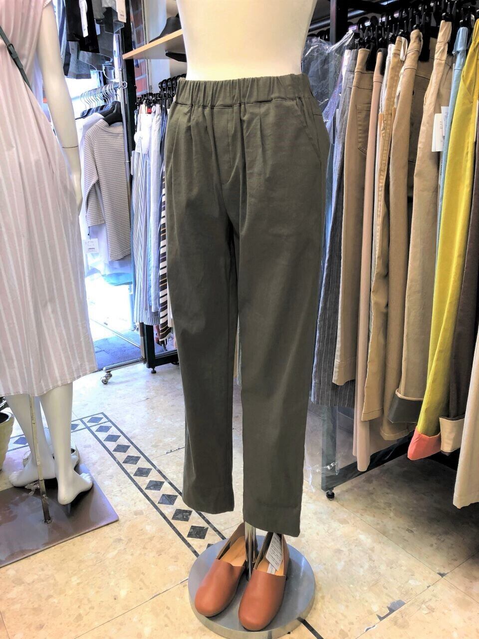 ■PAPILLON SELECT【パピヨンセレクト】★夏に向かって人気の涼しい超楽チンパンツ^。^/!裾配色テーパードパンツ!今や夏の定番パンツ!!!パピヨンセレクトメーカーから、毎年夏に超人気のテーパードパンツが今年も出ました^。^/!ウエストはしっかりとした平ゴム使いで、ヒップから太ももにかけては程よいゆとりを持たせ、裾は折り返せば配色のクロプトパンツ使用^0^/生地はカサカサしない滑らかで肌触りバツグンな麻混素材を使い、涼しくて伸縮性も強いので全体がノンストレスなパンツです^0^/手洗いが出来て、吸水性・通気性の良い綿麻素材は、初夏から秋までシーズンを通して着まわせるのが大人女性には嬉しい!!!これからの季節には、一着持っていれば重宝するおススメなパンツです^0^/