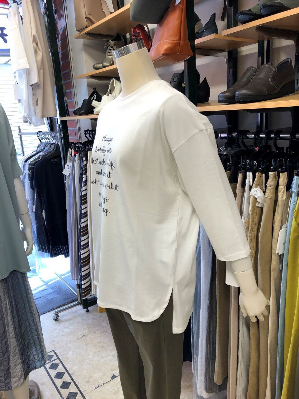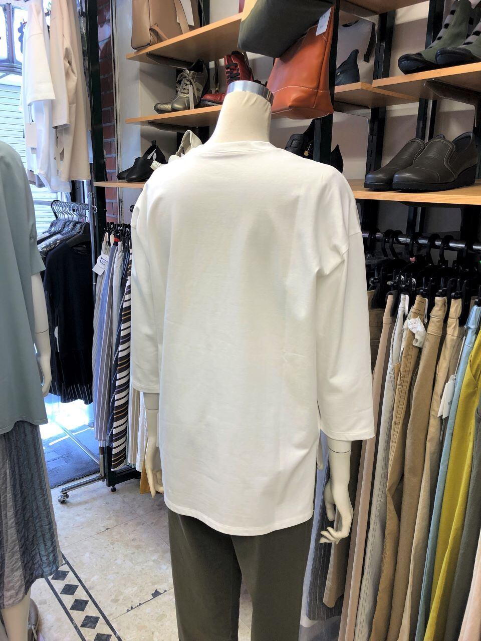 ■ATELIER SIX 【アトリエシックス】 ★夏には大活躍^。^/!ロゴ入りドロップショルダー七分袖Tシャツ!これからの季節にススメです!アトリエシックスから、柔らかで肌触りバツグンな人気のドロップショルダーTシャツが出ました^。^/!ワイドな身幅で人気の七分袖で、大人女性には嬉しいヒップが隠れる後ろ下がりの着丈^0^v程よいカジュアル感がある大人モードなロゴ入りで、これからの季節に一枚着に出来るのが大人女性には嬉しい!!!