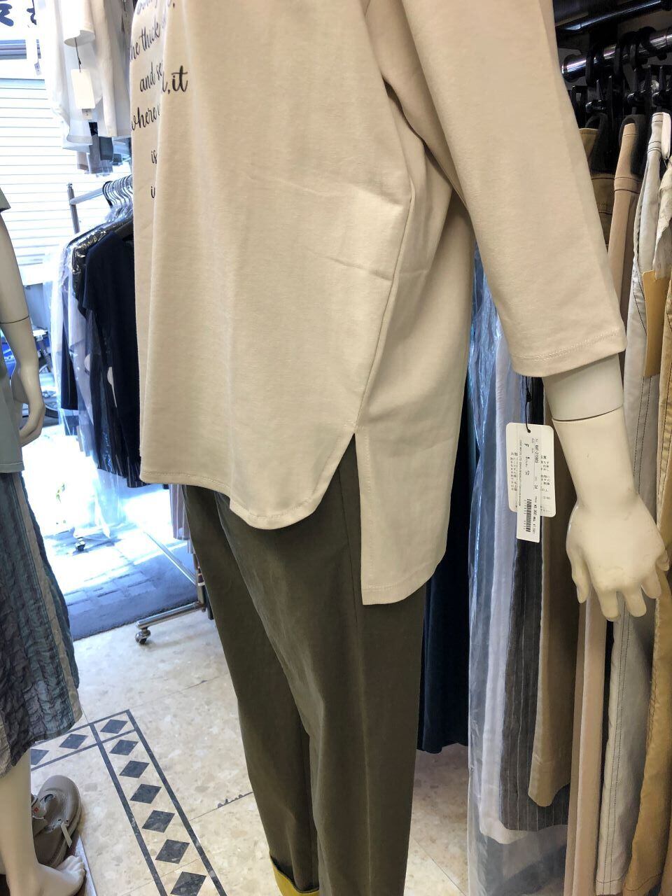 ■ATELIER SIX 【アトリエシックス】 ★夏には大活躍^。^/!ロゴ入りドロップショルダー七分袖Tシャツ!これからの季節にススメです!アトリエシックスから、柔らかで肌触りバツグンな人気のドロップショルダーTシャツが出ました^。^/!ワイドな身幅で人気の七分袖で、大人女性には嬉しいヒップが隠れる後ろ下がりの着丈^0^v程よいカジュアル感がある大人モードなロゴ入りで、これからの季節に一枚着に出来るのが大人女性には嬉しい!!!