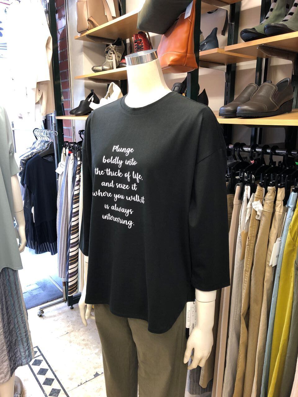 ■ATELIER SIX 【アトリエシックス】 ★夏には大活躍^。^/!ロゴ入りドロップショルダー七分袖Tシャツ!これからの季節にススメです!アトリエシックスから、柔らかで肌触りバツグンな人気のドロップショルダーTシャツが出ました^。^/!ワイドな身幅で人気の七分袖で、大人女性には嬉しいヒップが隠れる後ろ下がりの着丈^0^v程よいカジュアル感がある大人モードなロゴ入りで、これからの季節に一枚着に出来るのが大人女性には嬉しい!!!