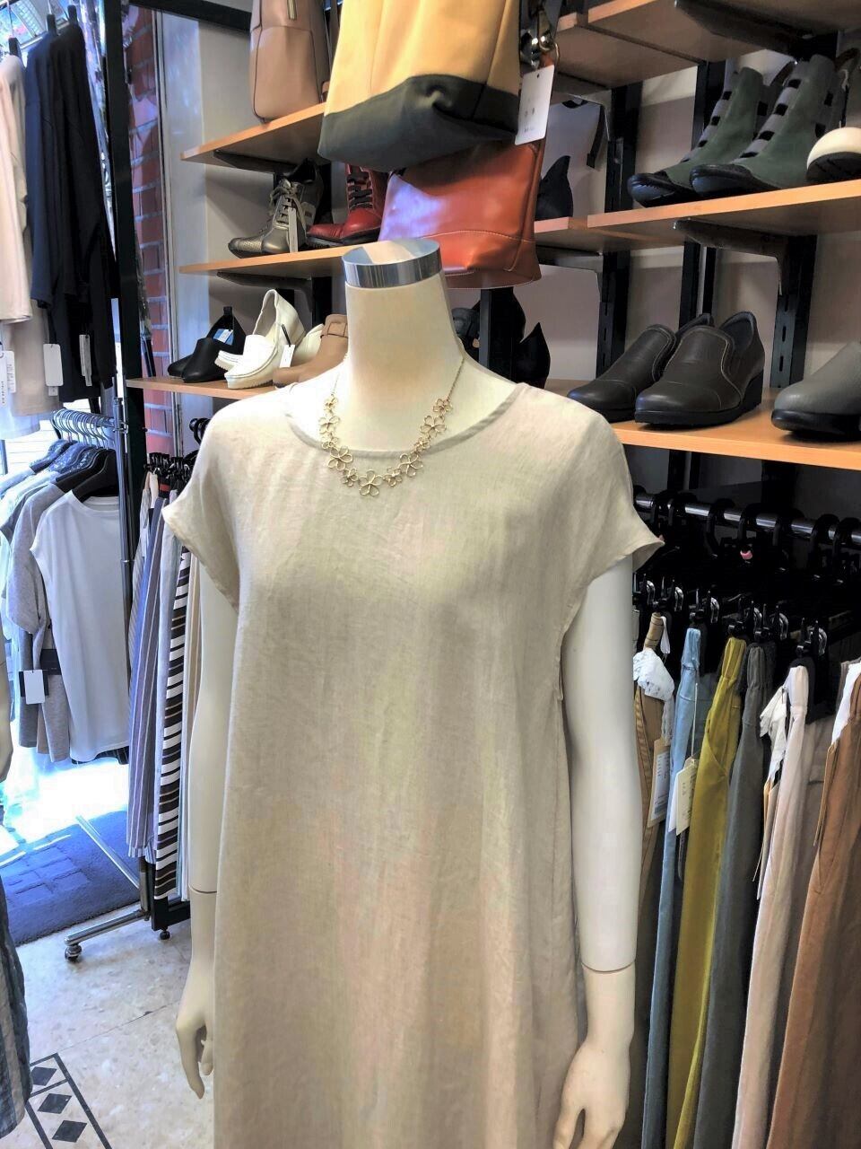 ■ATELIER SIX 【アトリエシックス】★涼し~い麻のワンピース^。^/!フレンチリネンフレアーロングワンピース!アトリエシックスから、今年も夏の超定番素材、フレンチリネンの麻ワンピースが出ました!フレンチリネンは、ヨーロッパリネンの本場、フランス産の原料を使用し、リネンならではのナチュラルな風合いと、素肌に心地よい肌触り、美しく品のある色合いも魅力です^0^vデザインはワンピースとしての永遠に不滅なフレアーロング丈で、一枚着のできるフレンチ袖、ゆるすぎない程よいゆとりの身幅と背中のVラインが大人女性にはピッタリなワンピース^0^/これからの季節には、一着持っていれば重宝するおススメなワンピースです^0^/