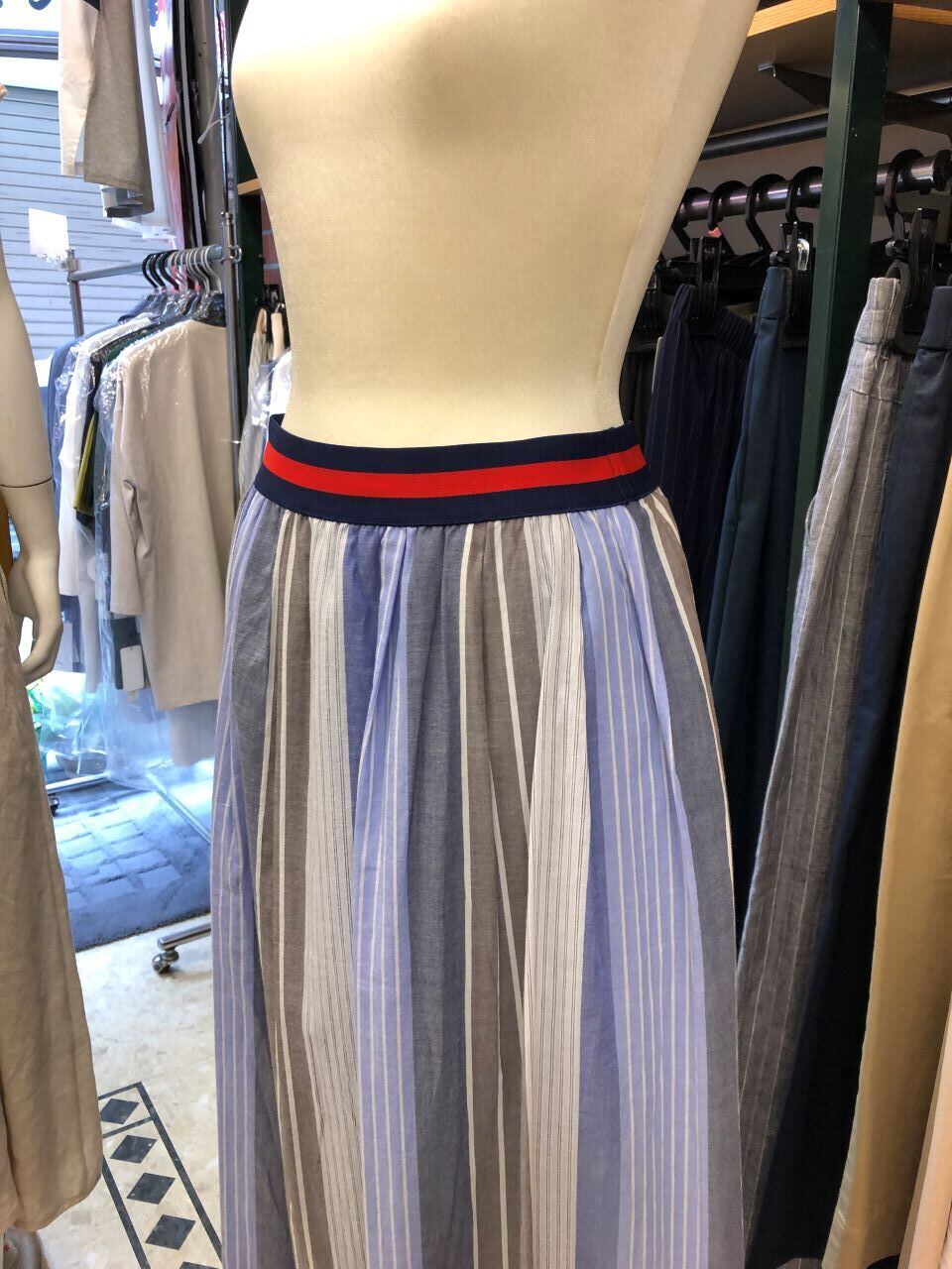 PAPILLON SELECT 【パピヨンセレクト】 ★マルチストライプウエストゴムギャザースカート!