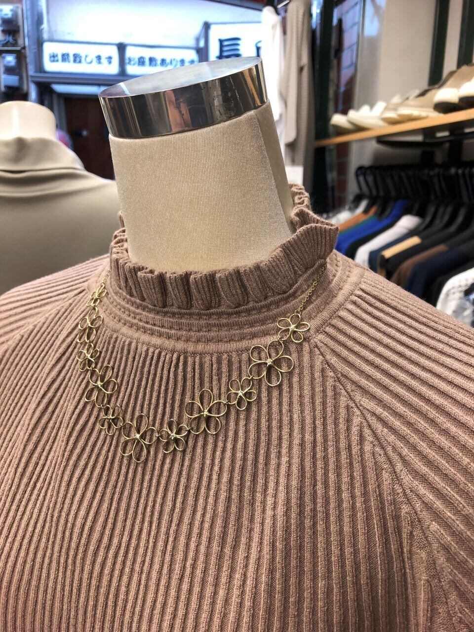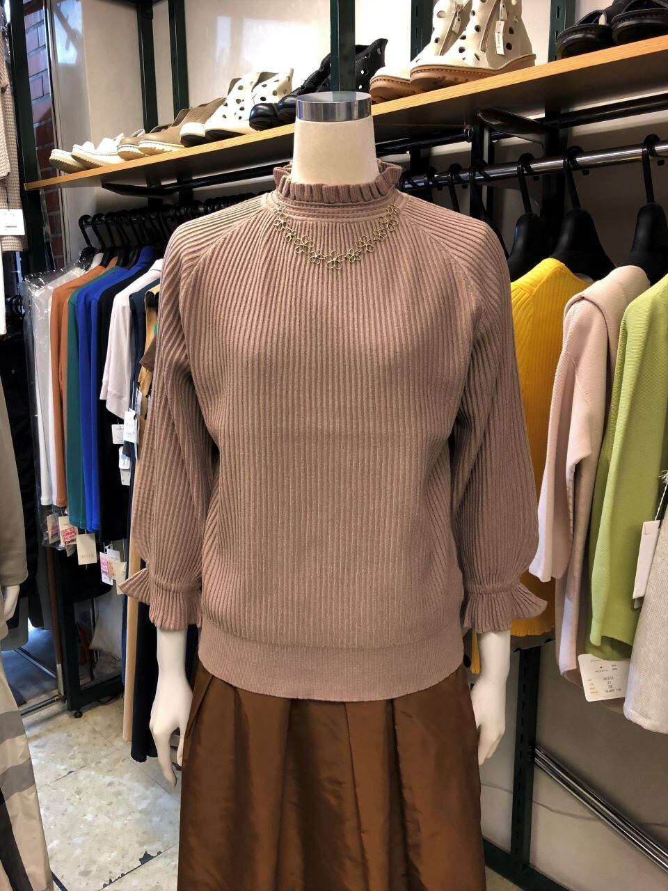 C`est moijeu 【セモアージュ】 ★秋物 ❣ フリルネック九分袖リブニットプルオーバー!