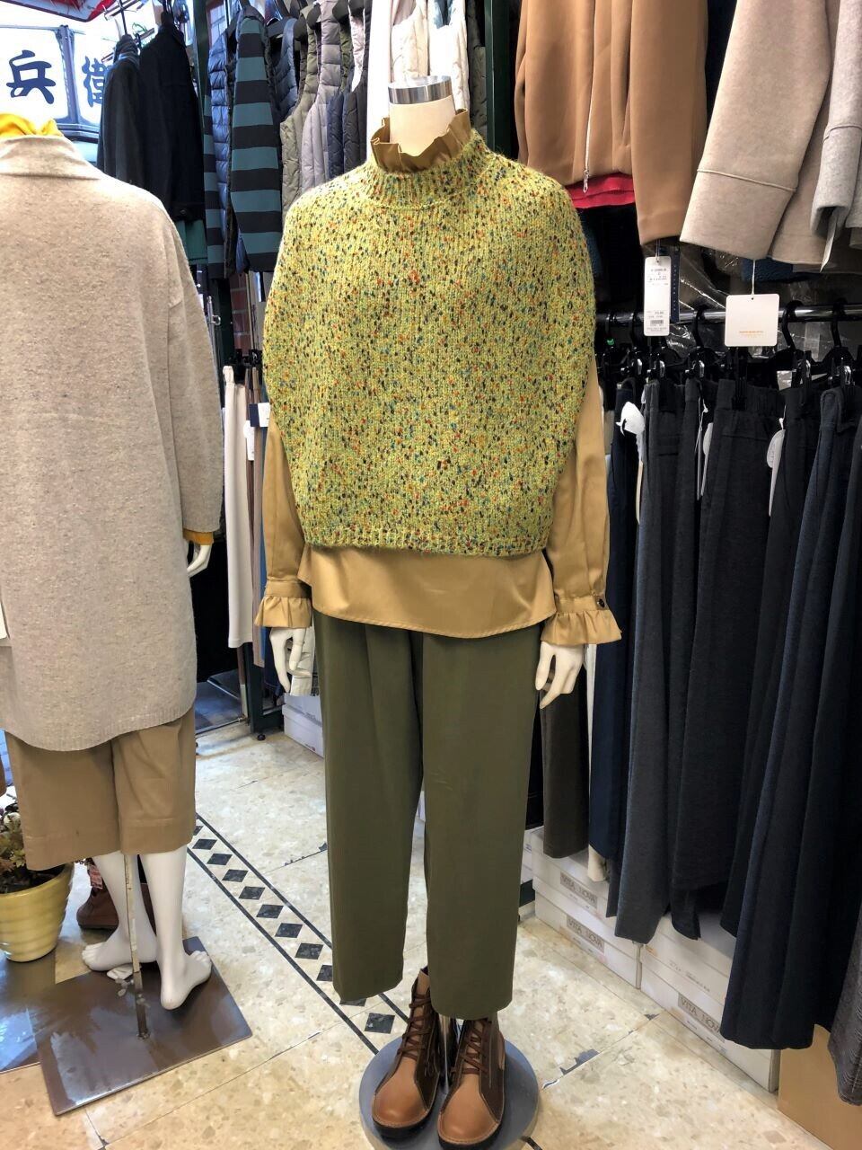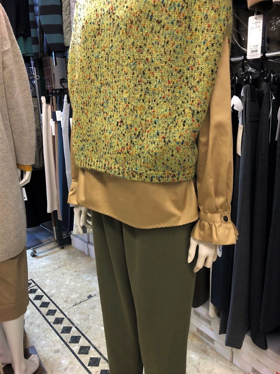 ■ATELIE SIX 【アトリエシックス】 ★ やっぱりネップは可愛い^。^/!MIXネップポンチョ風ベスト!今冬には一着は欲しいニットベストは超おススメアイテムです!ゆったりしたサイズのちょっと短めな着丈の大人可愛いベストです^0^/ポンチョ風にズボッとかぶればOK^0^v太めの糸にカラーネップ(ネップとは、繊維が絡み合ってできた節(糸のかたまり)のことです。)を絡ませて、ワイドな身幅に編み上げた超大人可愛いベスト^0^/ワイドパンツ・スカート・デニム等々なんにでも相性バツグン^0^v