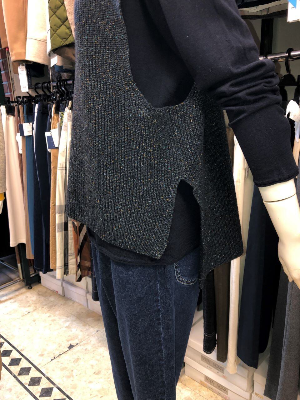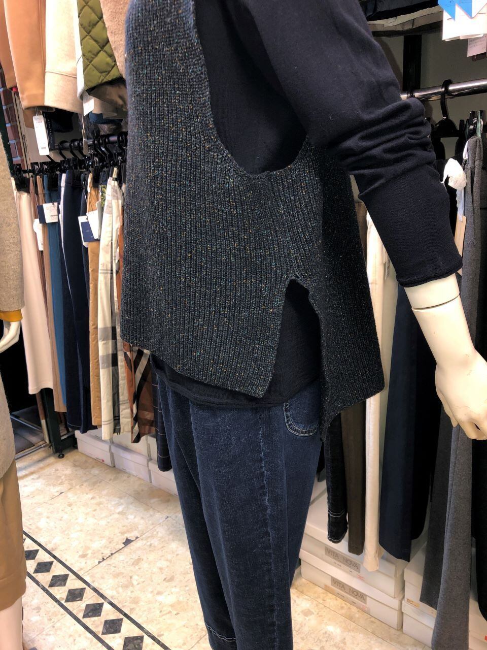 ■PAPILLON SELECT 【パピヨンセレクト】 ★ このざっくり感が大人可愛い^。^/!ミックスカラーニットベスト!超おススメです!アームホールが広く多てゆったりしていて、ヒップが隠れるちょっと長めな後ろ着丈の大人可愛いざっくりした畦編みミックスカラーベストです^0^/広めなアームホールは、人気のドロップショルダーとかドルマン袖のニット・ブラウスにも楽々に着れるので、これからの季節に上着感覚でオシャレ~^0^vゆったりサイズだけど、広がりの無い裾のスリットで細見え・華奢見え効果バツグンなのが嬉しい^0^/ワイドな身幅だけど袖が付いてないので真冬にはコートインにも着回せるのも嬉しい^0^/春先には白T・白シャツ合わせもいいかも^^^^!!!