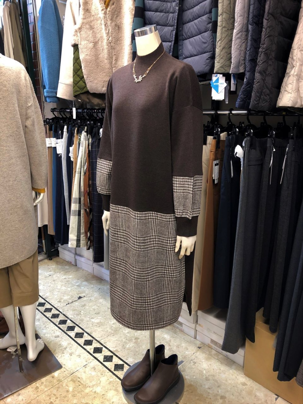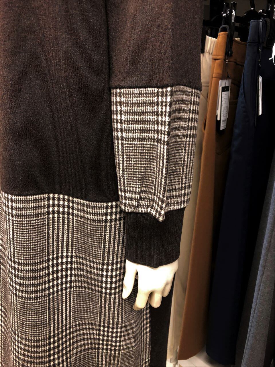 ■C`est moijeu 【セモアージュ】 ★ドロップショルダーニット×グレンチェック柄ツイード^。^/!異素材組み合わせワンピース!超おススメです!セモア・セモアージュから、人気のドロップショルダーニットと冬らしいツイード生地を組み合わせた大人可愛いワンピースが出ました^0^/トップス部分はドロップショルダーのベーシックなハイネックニットですが、前側ボトムス部分と袖先はグレンチェック柄のツイード生地で切り替えたワンピース^0^/両サイドスリットで動きやすく、今年らしくイエロー色タイツのチラ見せがいいかも!!!冬にはダウンベストを着てもめっちゃ可愛い^0^/ワンピース×ショートブーツは冬の鉄板コーディネート^0^/