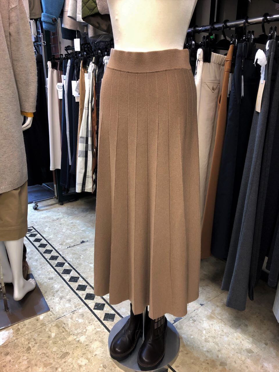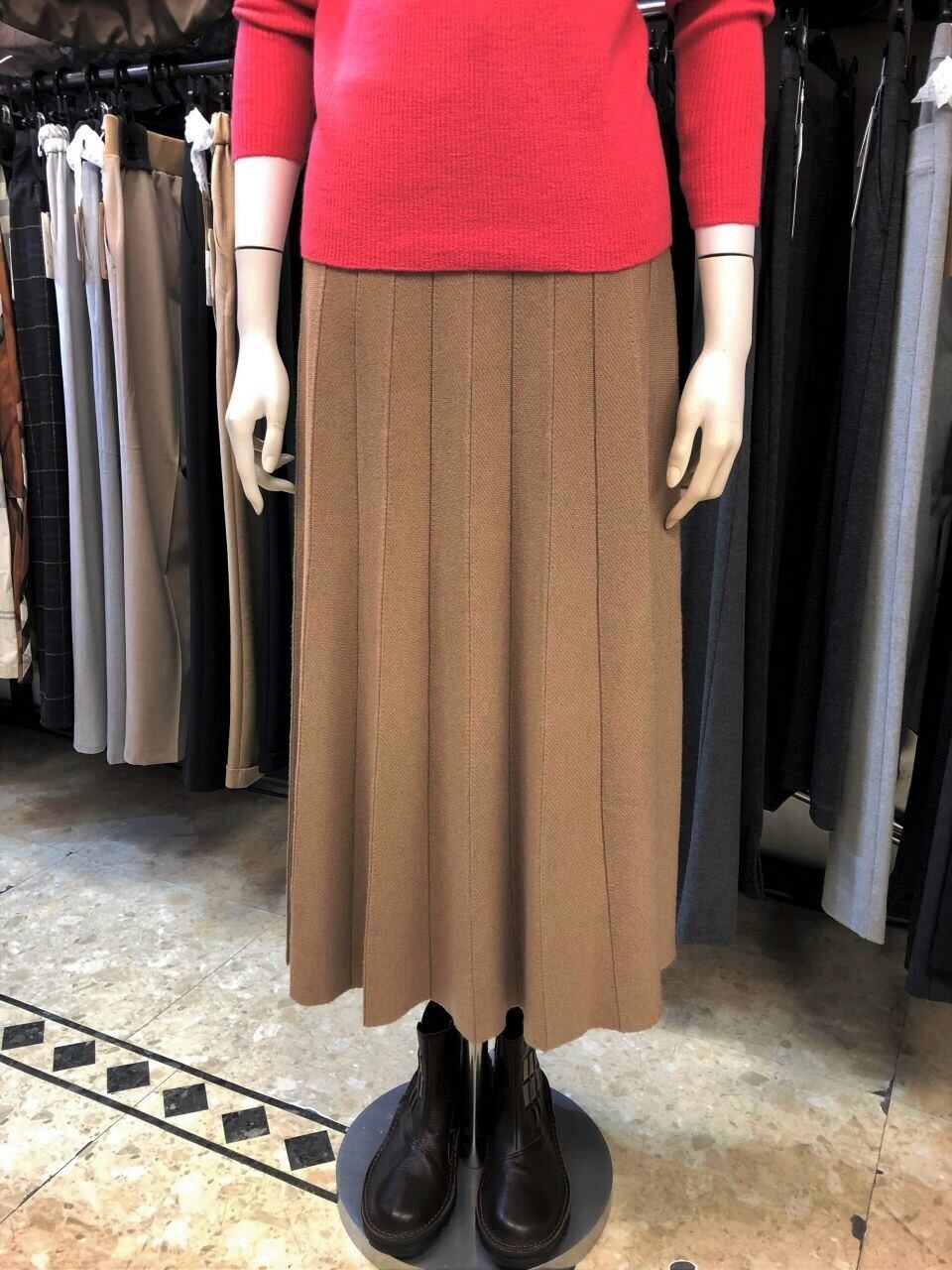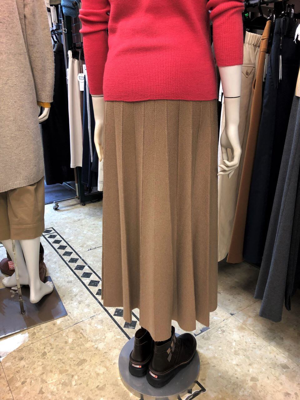 ■ATELIER SIX 【アトリエシックス】★ニット独特の柔らかさと動いた時のゆらゆら感が最高^。^/! プリーツ風ニットフレアースカート!超おススメ!セモア・アトリエシックスからアンクルブーツにピッタリな存在感バツグンなニットスカートが出ました^。^/!ウエスト部分から裾へフレアーラインに広げたプリーツ風に見える裾フレアーの最高に大人可愛いニットスカートです^0^/!ニット独特の柔らかさと動いた時のゆらゆら感が最高^。^/!歩くと揺れる分量たっぷりな裾フレアーが贅沢気分イッパイ^。^/!