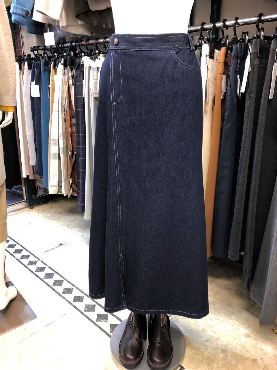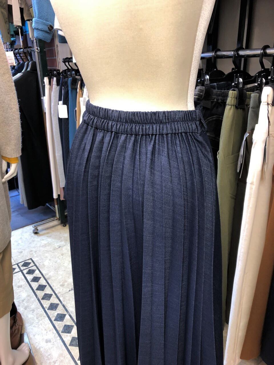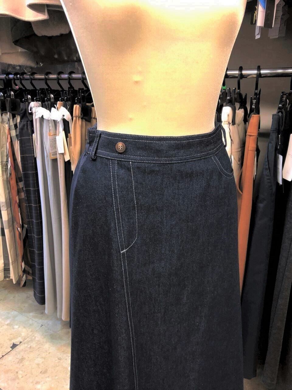 ■PAPILLON SELECT 【パピヨンセレクト】 ★気になるバックスタイルもバッチリ^。^/!バックプリーツデニムスカート!おススメです!パピヨンセレクトメーカーから、大人女性にピッタリな前後で全く雰囲気の違うスカートが出ました^0^v前部分は台形型でアシメトリーなハギを施したデニム仕立てで、後ろ部分は異素材を分量たっぷり使った女性らしいプリーツ仕上げ!!!動くとプリーツの揺れと広がりが綺麗に見える表情豊かなバックスタイルスカートは女性らしい印象で女子度UP⤴^0^ニットを合わせればカジュアルに、ブラウスを合わせれば上品にと着まわせるのが嬉しい^0^/ウエストは後ろ部分にゴムを使っているので丈夫で安心感もあり、締め付けが無いのでストレスフリーな快適な穿き心地なのも魅力です^0^v