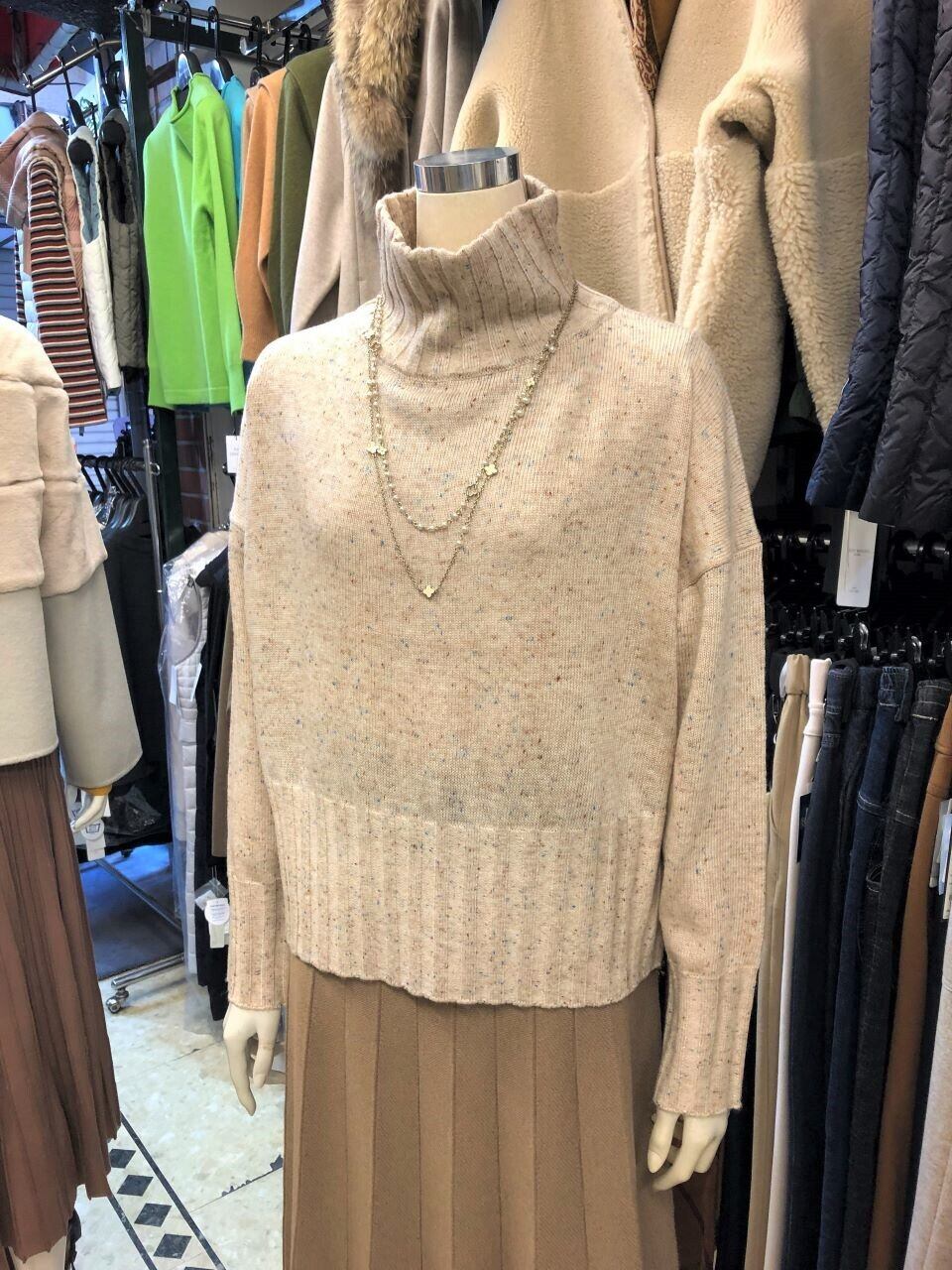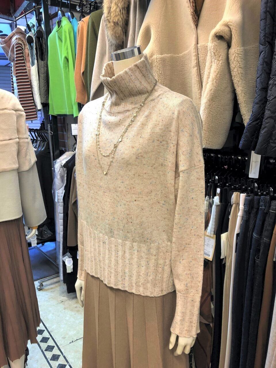 ■PAPILLON SELECT 【パピヨンセレクト】 ★カラーネップを編み込んだキレイ色ニット^。^/!カラーネップハイネックプルオーバー!おススメです!パピヨンセレクトメーカーから、襟・袖先・裾をワイドリブ編みにした大人可愛いゆったり身幅のドロップショルダーニットが出ました^0^/数色のキレイ色のネップ糸を組み合わせて遠目で見ると柔らかな1色に見え、少し高めな襟は小顔見えするとても顔映りの良い着映えするニットです^0^vカジュアルコーディネートには一着は持っていたいニットです^0^/