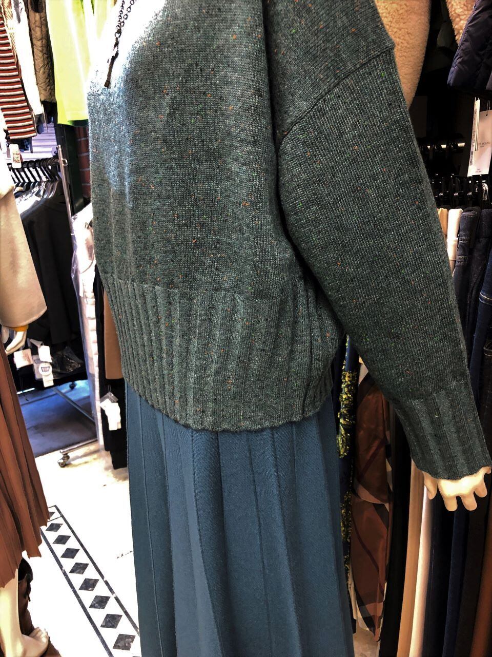 ■PAPILLON SELECT 【パピヨンセレクト】 ★カラーネップを編み込んだキレイ色ニット^。^/!カラーネップハイネックプルオーバー!おススメです!パピヨンセレクトメーカーから、襟・袖先・裾をワイドリブ編みにした大人可愛いゆったり身幅のドロップショルダーニットが出ました^0^/数色のキレイ色のネップ糸を組み合わせて遠目で見ると柔らかな1色に見え、少し高めな襟は小顔見えするとても顔映りの良い着映えするニットです^0^vカジュアルコーディネートには一着は持っていたいニットです^0^/