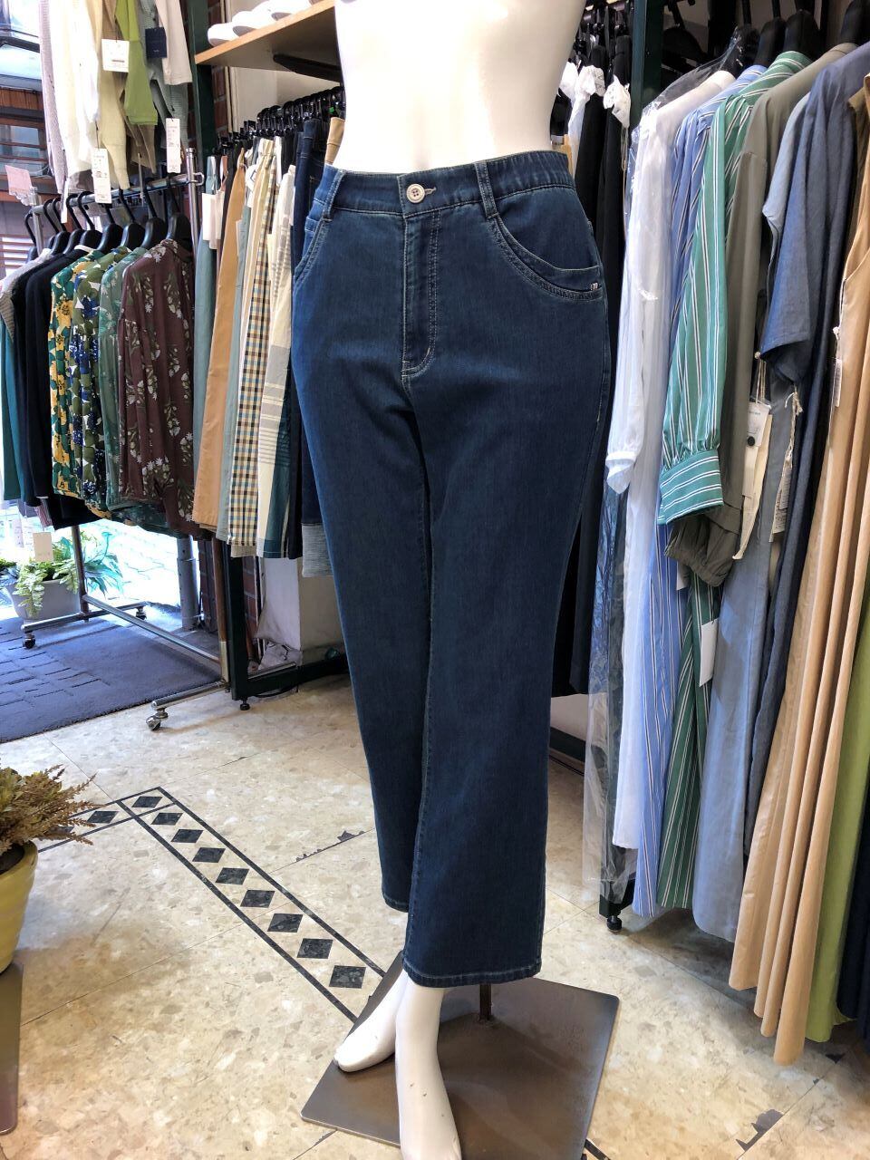■PAPILLON SELECT 【パピヨンセレクト】★飽きの来ない定番ストレート!やわらかで履き心地バツグンなジョグデニム^。^/!ニュージョグデニムストレートパンツ!超おススメです!パピヨンセレクトメーカーから、いつの時代でも人気の超定番のストレート型ネイビーカラーのデニムパンツが出ました!デニム好きには堪らない更に履き心地が良くなったニュージョグデニム生地を使ったネイビーブリーチデニムパンツ!^0^/!一度穿くとハマってしまう、美尻・美脚デニムで、ウエストはギャザーの入ってないスッキリ見えの楽々なゴム仕立て^。^/!これまでの布帛デニム生地では考えられない程のやわらかさと伸縮性で履き心地バツグン^0^/!大人女性には最適のデニムパンツ^。^/!
