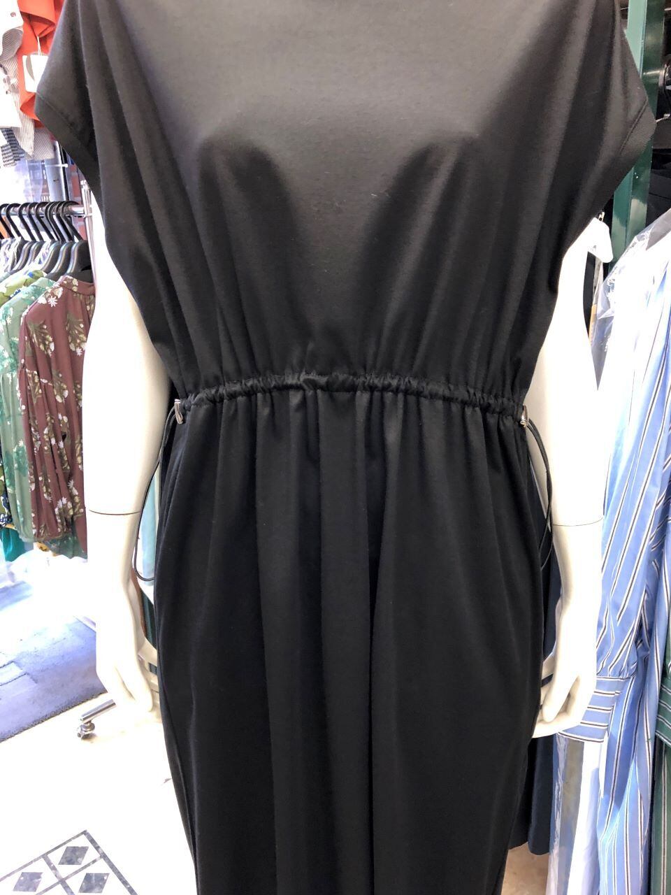 ■C`est moijeu 【セモアージュ】★夏になると大活躍なカットソーワンピース^。^/!リブニット組み合わせドローストリングワンピース(通称ドロストワンピース)!超おススメです!セモアージュから、夏の人気シリーズの涼しくて手洗いが出来るカットソーワンピースがバージョンアップして今年も出ました^0^/暑い夏でも崩れ過ぎなくて通勤にもお出掛けにも使える涼しくて楽々なワンピースです^0^/両脇からのドローストリングでカジュアルなゆったり見えから、キュッと絞ってきれいめなスッキリ見えまで好みの着回しが楽しめます(ドローストリングとは引っ張る紐がついたデザインのこと)^0^/ネックと袖先部分はリブニットとの異素材組み合わせが個性的で高見えする優れモノワンピースです^0^/