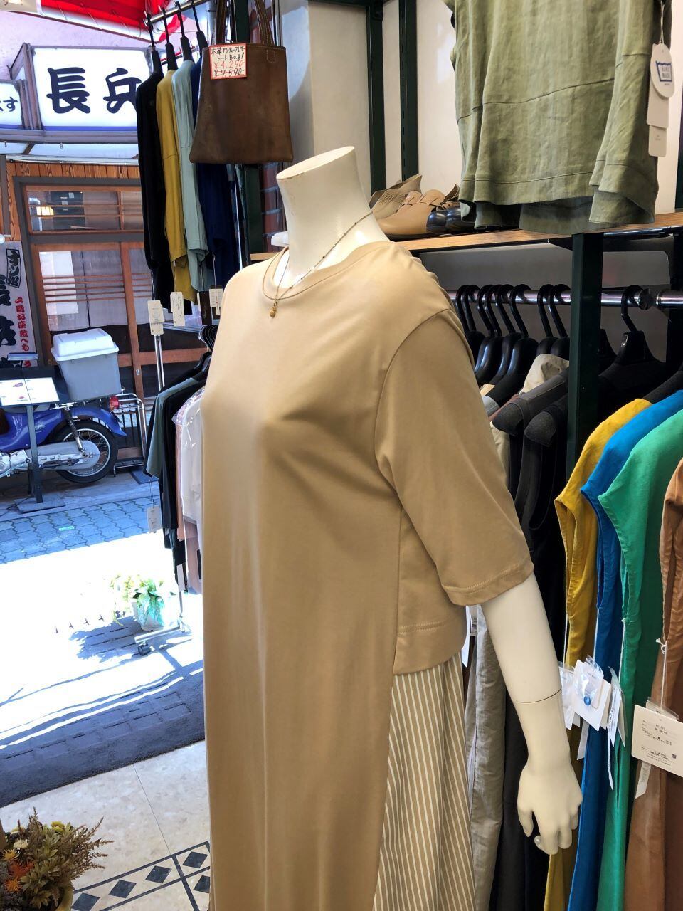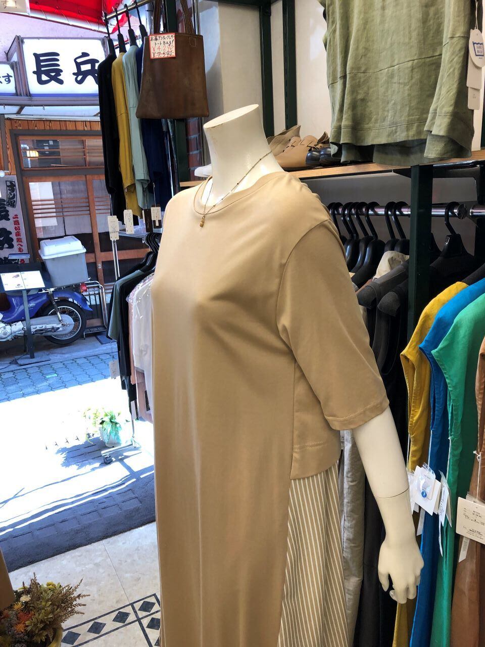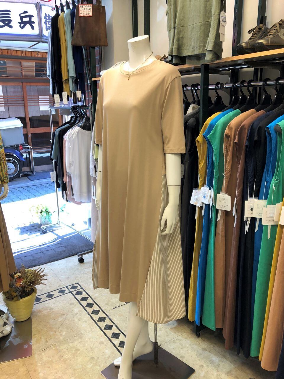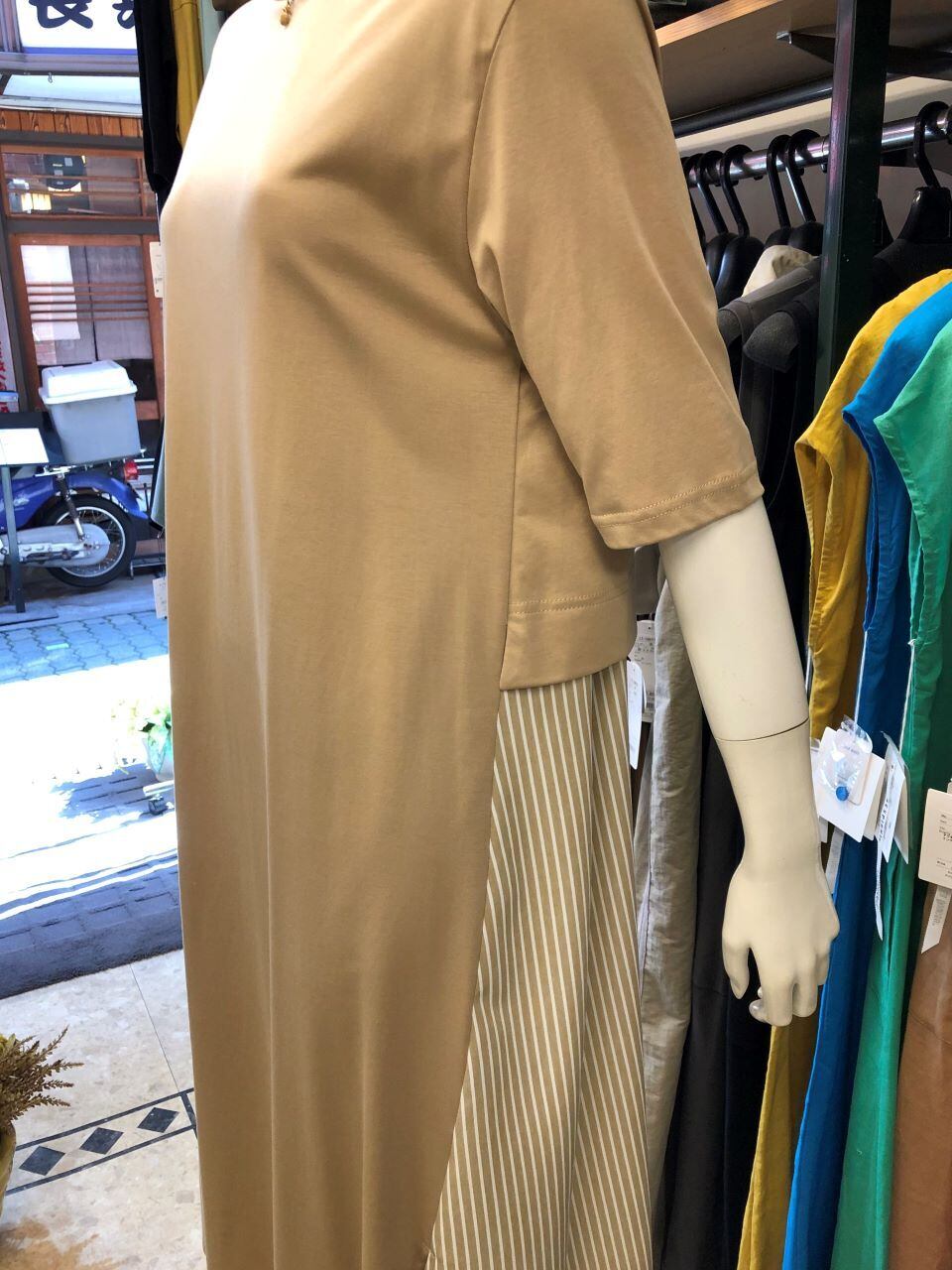 ■PAPILLON SELECT 【パピヨンセレクト】★春から秋まで大活躍なワンピース^。^/!Tシャツ×ストライプ柄タイプライター生地異素材切り替えワンピース!超おススメです!パピヨンセレクトメーカーから、人気シリーズの異素材切り替えワンピースがバージョンアップして今年も出ました^0^/前から見ると光沢感の有るシルケット加工したキレイなTシャツ素材のワンピース^0^/バックスタイルは、Tシャツとストライプ柄スカートとのコーディネート見えしているように異素材を組み合わせているので着崩れの心配がなくて通勤にもお出掛けにも使えるオシャレで楽々なワンピースです^0^/柔らかで肌触りの良いTシャツ部分と、パリッとしたハリ感が人気のタイプライター生地との異素材組み合わせのソフトフレヤーロングワンピース^0^/スカート部分の両サイドを少し前に巻き込むように切り替えてスリットを入れているのでフレヤーなのにスッキリ見えラインが嬉しい^0^vタイプライター生地はハリ感だけでなく、自然に立体的なシワ感(嫌なシワではないです^^)ができることも特徴のひとつ。さらに、薄手の生地で軽いので暑くなることなく、特に夏場は快適に着ることができます^0^/