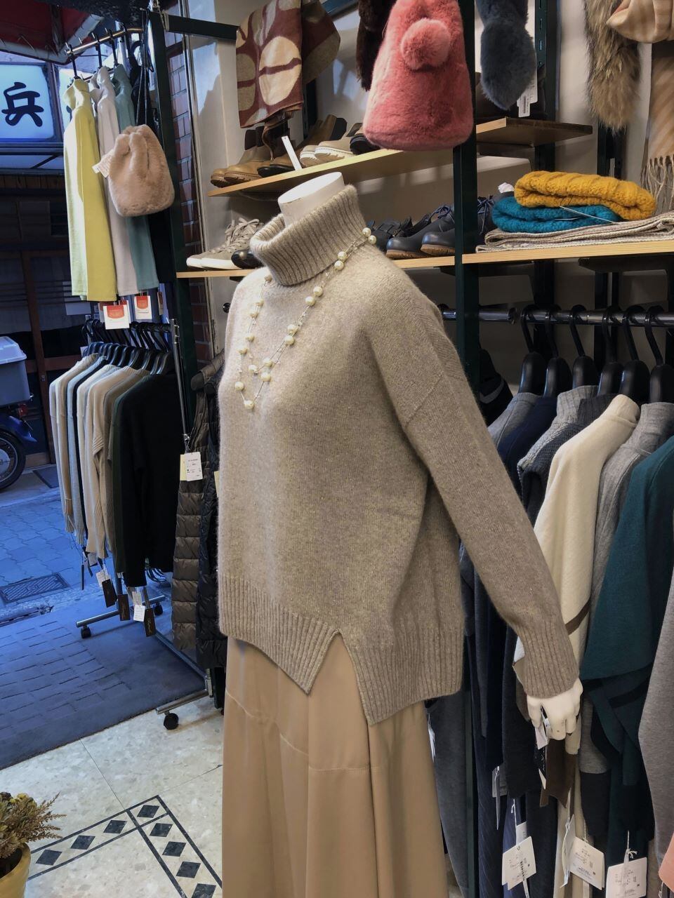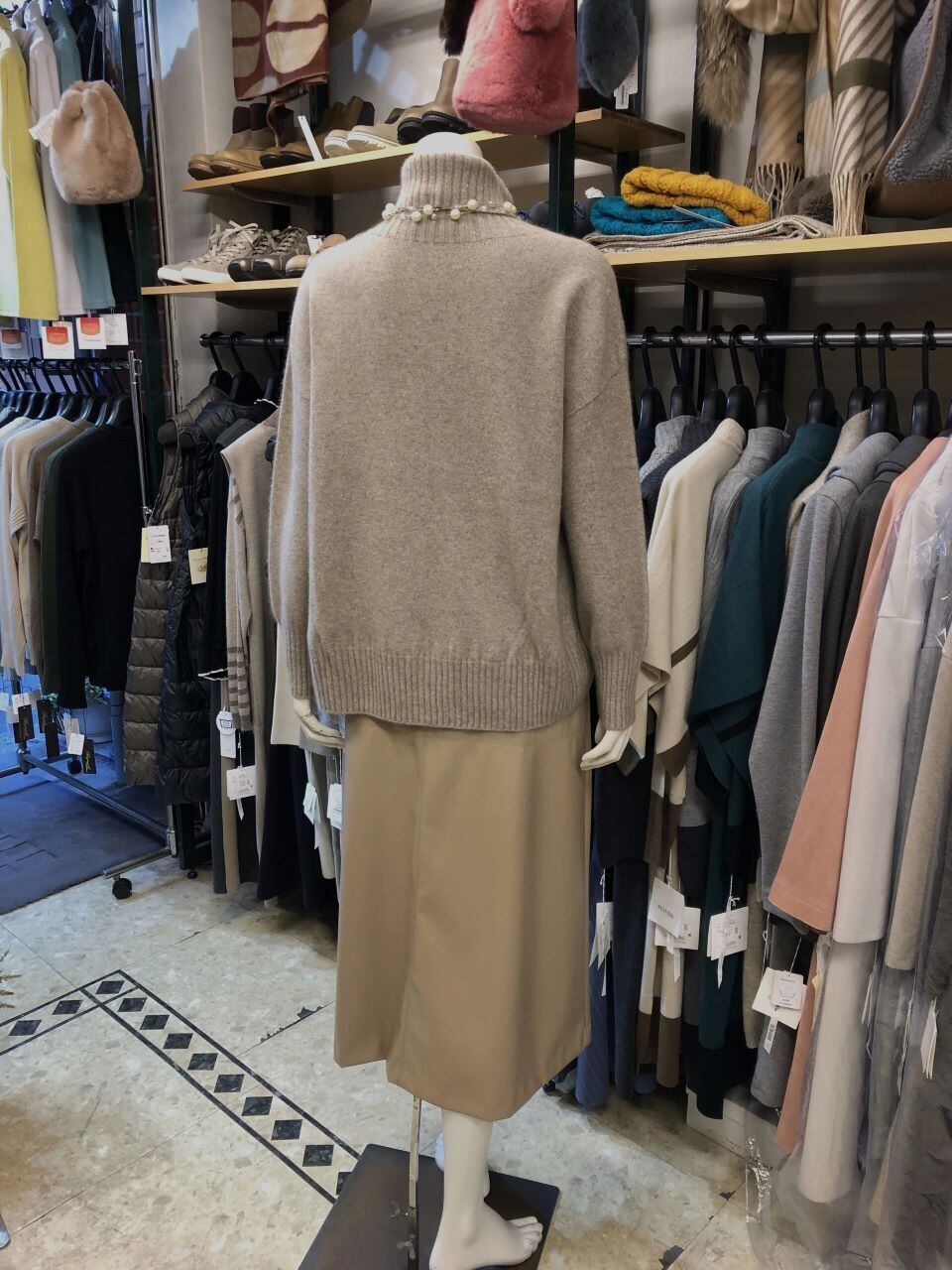 C`est moijeu 【セモアージュ】★ホールガーメント編み前裾スリット入りタートルセーター!